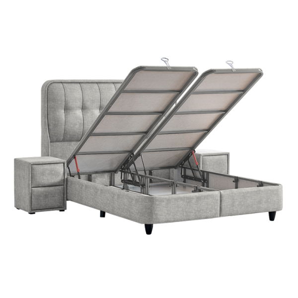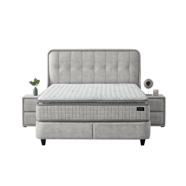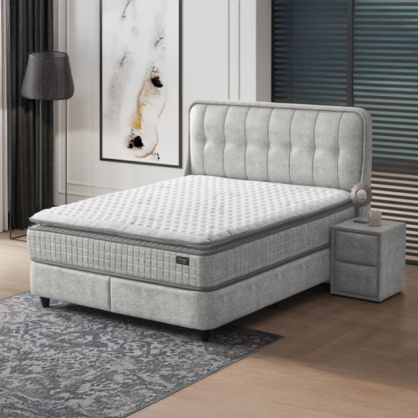 Тапицирана спалня с матрак PICASSO 160 x 200 е стилна интерпретация на класическата визия с модерен привкус. Таблата с мека тапицерия и прави вертикални линии придава усещане за симетрия и уют, а заоблените ъгли омекотяват формата и допринасят за хармоничния силует на модела. Матракът е двулицев, с покет пружини, еластична пяна и пухена вложка, като се отличава с твърда структура и изразени ортопедични свойства – идеален за почитателите на стабилна опора и здравословна позиция по време на сън. Под него се намира стабилна подматрачна рамка с ракла за съхранение, осигуряваща дискретно и практично място за подреждане.