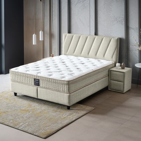 Превърнете спалнята си в истинско място за почивка със стилната и функционална тапицирана спалня с матрак SIESTA 160 x 200, която съчетава елегантна визия, комфорт и удобство в едно. Моделът впечатлява с мека текстилна дамаска в светло сив цвят и изчистена табла с нежни шевове, която придава усещане за лекота и уют. Спалня SIESTA е оборудвана с двулицев матрак с вградена подматрачна рамка, който осигурява стабилна и комфортна опора благодарение на бонел пружините, еластичната пяна и пухената вложка. Матракът е с умерено твърда структура и добри ортопедични свойства, подходящ за всекидневна употреба. Под леглото се крие практична ракла за съхранение – идеално решение за подреждане на спално бельо и други вещи.