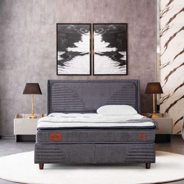 STRESS ZERO е тапицирана спалня с включен матрак с размери 160 х 200 и осигурява идеалното място за качествен сън. Таблата и основата са изработени от висококачествена и приятна на допир дамаска. Със своя класически дизайн, STRESS ZERO се вписва чудесно в различни интериори. Моделът има голяма ракла за съхранение, която се разкрива с помощта на вградения амортисьор за повдигане.