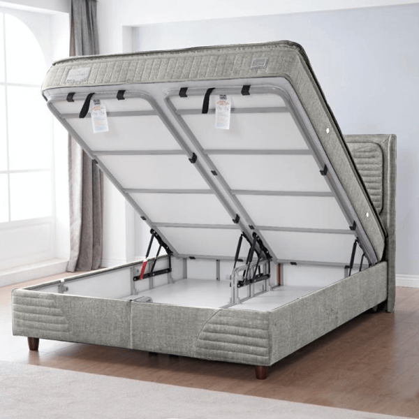 STRESS ZERO е тапицирана спалня с включен матрак с размери 180 х 200 и осигурява идеалното място за качествен сън. Таблата и основата са изработени от висококачествена и приятна на допир дамаска. Със своя класически дизайн, STRESS ZERO се вписва чудесно в различни интериори. Моделът има голяма ракла за съхранение, която се разкрива с помощта на вградения амортисьор за повдигане.