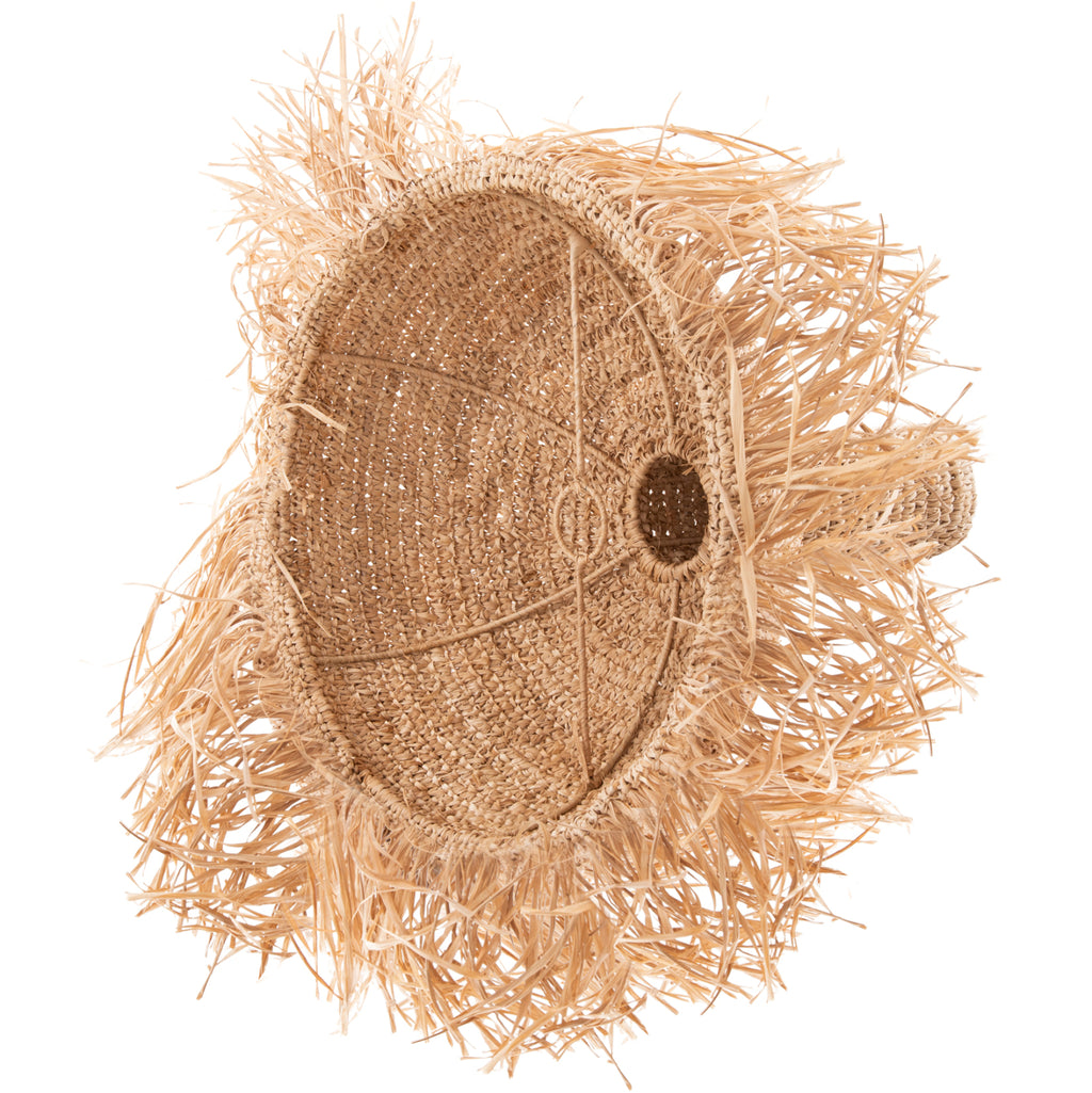 КГ11923- Пендел---- Ако искате да украсите вашето пространство с лампа в бохо стил с екзотични материали и да я комбинирате с най-новата тенденция в декорацията, която е въже, това е най-добрият избор. Представлява единична лампа с цилиндрична "шапка" от влакна на палмови листа с ресни, в НАТУРАЛЕН цвят. Въжето, на което се окачва от тавана, е прикрепено към дръжката за окачване на тази лампа.