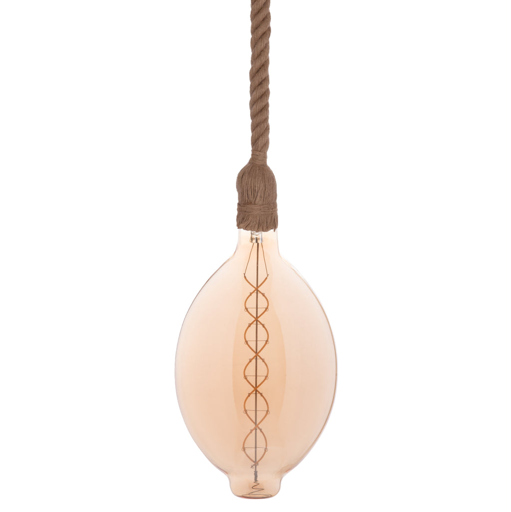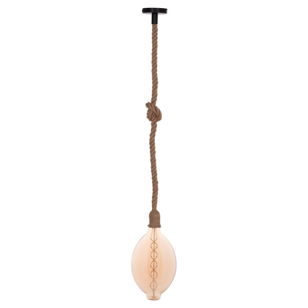 Искате ли да се откроите и да създадете напълно различно усещане във вашия дом или бизнес? Тази плафониера с една лампа, висяща на въже, и абажурът, ПОКРИТ от това въже, със сигурност ще привлече вниманието и ще започне разговори. Просто го оставете да виси или направете възел, както желаете, за да можете да придадете своя личен щрих на пространството. В крайна сметка това трябва да е една от основните характеристики на осветлението. Да отразява характера и личността на собственика! Осветлението е бижуто на вашия дом или бизнес пространство. ТЕХНИЧЕСКИ ХАРАКТЕРИСТИКИ: Тип цокъл на лампата: E27 Нормален цокъл Лампа: LED С ЖИШКА 8W E27 3000K ЦВЯТ ЧАЙ ДИМУМИРАЕМА ЛАМПА Обща височина (включително абажура): 108 см (регулируема в зависимост от това какво искате да правите с въжето) Дължина само на въжето: 1 м Дебелина на въжето: 2 см. Лампата има CE сертификат. МАТЕРИАЛИ НА КОНСТРУКЦИЯТА: Лампата е изработена от въже, а таванът е метален. **СВЕТЛИНАТА Е НАЛИЧНА С КОНКРЕТНАТА КРУШКА