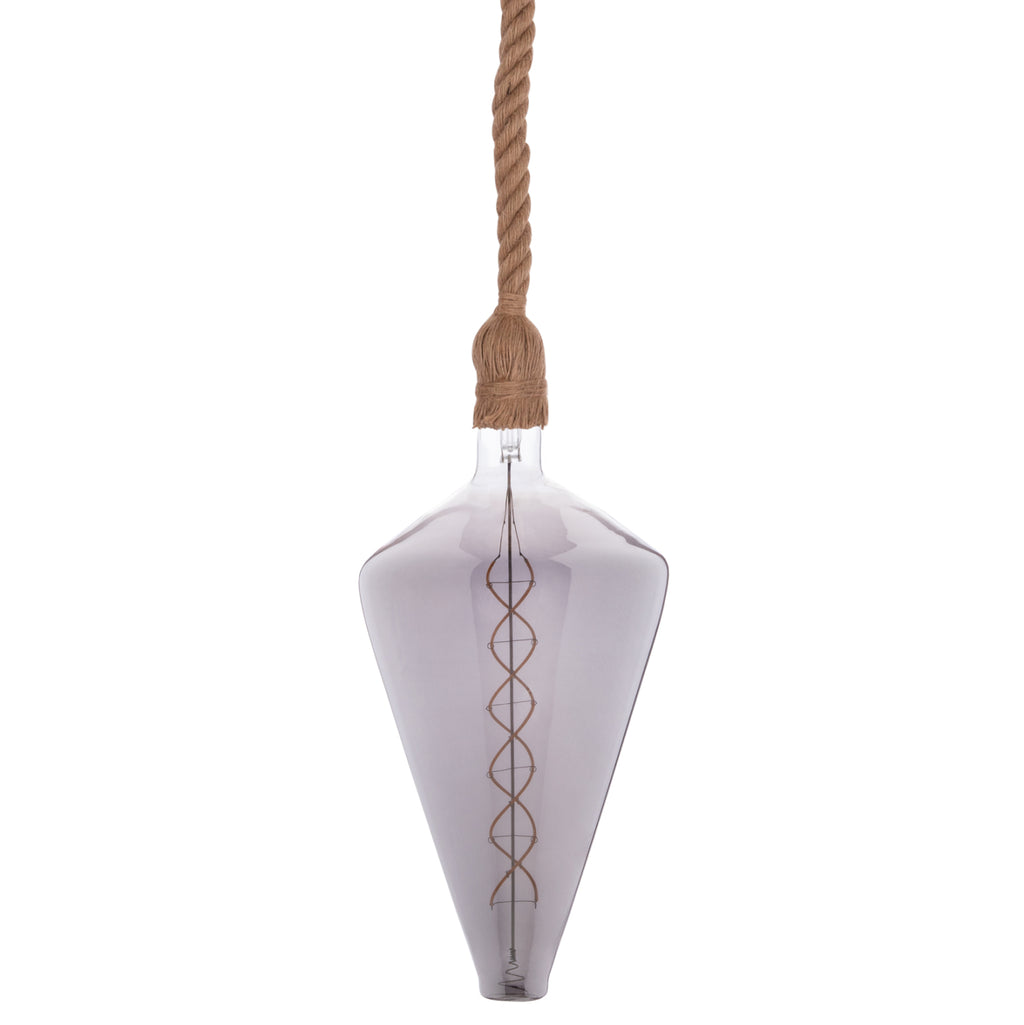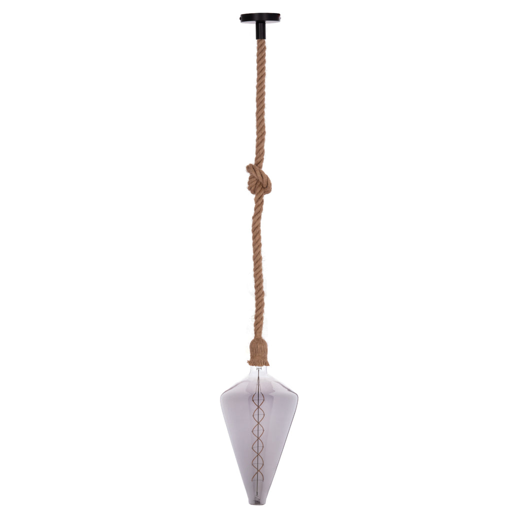 Искате ли да се откроите и да създадете напълно различно усещане във вашия дом или бизнес? Тази красиво проектирана таванна лампа с единична лампа, висяща на въже и абажурът, ПОКРИТ от това въже, със сигурност ще привлече всички погледи и ще започне разговор. Просто го оставете да виси или направете възел, както желаете, за да можете да придадете своя личен щрих на пространството. В крайна сметка това трябва да е една от основните характеристики на осветлението. Да отразява характера и личността на собственика! Осветлението е бижуто на вашия дом или бизнес пространство. ТЕХНИЧЕСКИ ХАРАКТЕРИСТИКИ: Тип държач на лампата: E27 Нормален цокъл Лампа: LED С ЖИШКА 8W E27 3000K ЦВЯТ ДИМ ПРОЗРАЧЕН ДИМУМЕН- Лумени: 320 Обща височина (включително абажура): 108 см (регулируема в зависимост от това какво искате да правите с въжето) Дължина само на въжето: 1 м Дебелина на въжето: 2 cm. Лампата има CE сертификат. МАТЕРИАЛИ НА КОНСТРУКЦИЯТА: Лампата е изработена от въже, а таванът е метален. **СВЕТЛИНАТА Е НАЛИЧНА С КОНКРЕТНАТА КРУШКА