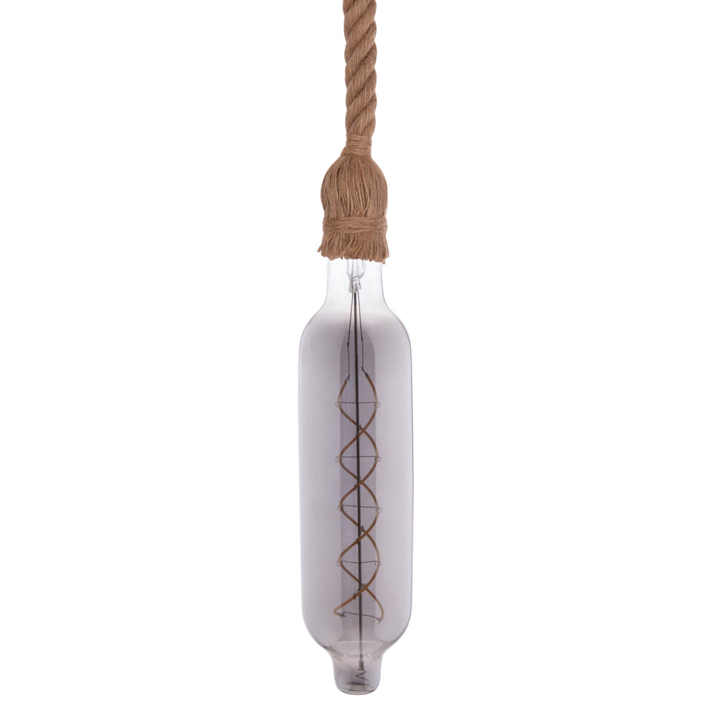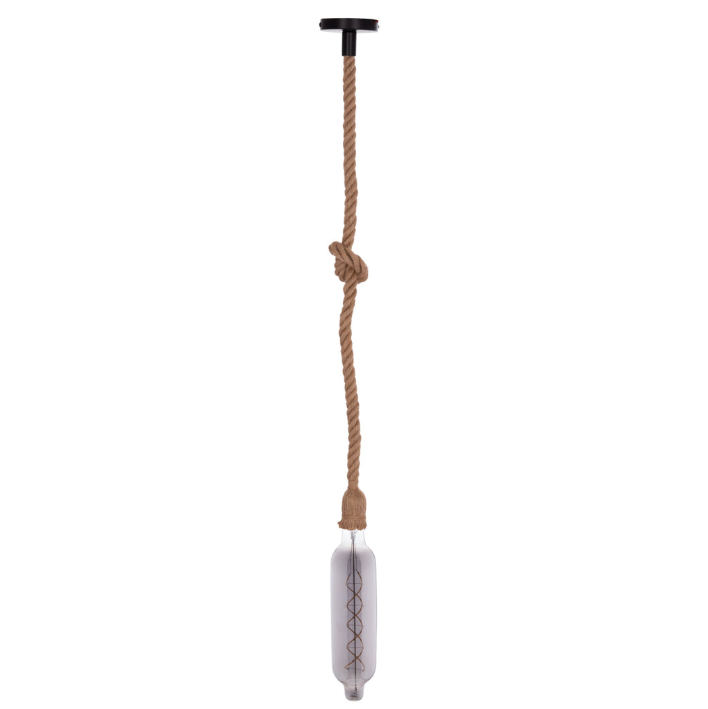 Искате ли да се откроите и да създадете напълно различно усещане във вашия дом или бизнес? Тази красиво проектирана таванна лампа с единична лампа, висяща на въже и абажурът, ПОКРИТ от това въже, със сигурност ще привлече всички погледи и ще започне разговор. Просто го оставете да виси или направете възел, както желаете, за да можете да придадете своя личен щрих на пространството. В крайна сметка това трябва да е една от основните характеристики на осветлението. Да отразява характера и личността на собственика! Осветлението е бижуто на вашия дом или бизнес пространство. ТЕХНИЧЕСКИ ХАРАКТЕРИСТИКИ: Тип цокъл на лампата: E27 Нормален цокъл Лампа: LED ФИЛАМЕНТ 8W E27 3000K ЦВЯТ НА ДИМ ДИМУМЕН- Лумени: 320 Обща височина (включително абажура): 108 см (регулируема в зависимост от това какво искате да правите с въжето) Дължина само на въжето: 1 м Дебелина на въжето: 2 см. Лампата има CE сертификат. МАТЕРИАЛИ НА КОНСТРУКЦИЯТА: Лампата е изработена от въже, а таванът е метален. **СВЕТЛИНАТА Е НАЛИЧНА С КОНКРЕТНАТА КРУШКА