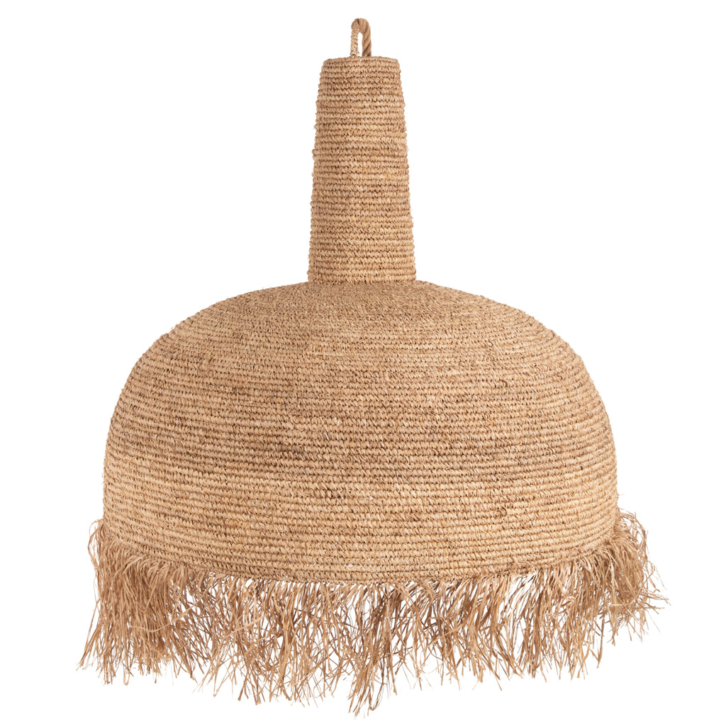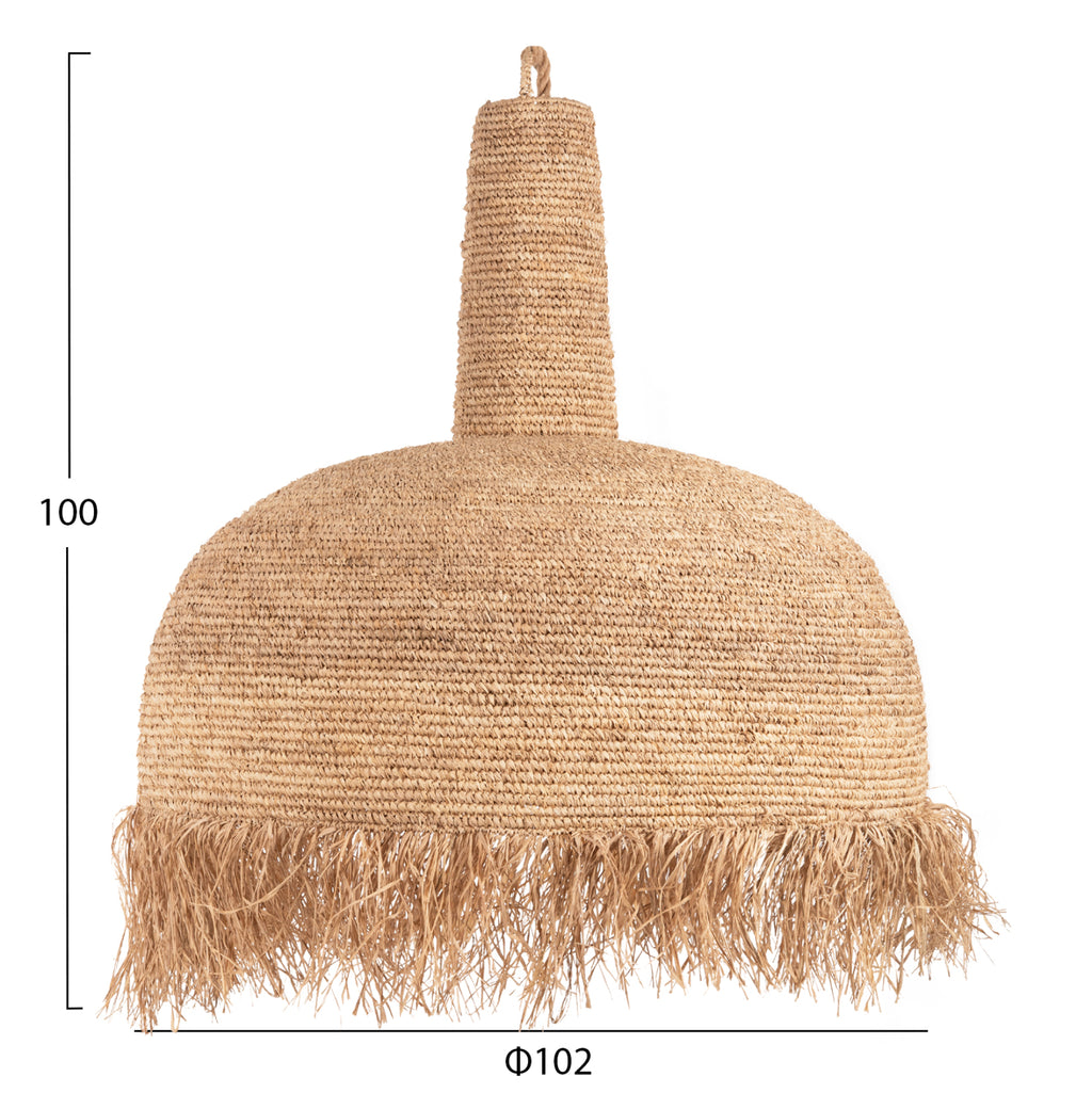 КГ4032- Висяща лампа---- Ако искате да украсите вашето пространство с голяма лампа в бохо стил с екзотични материали, това е типичен избор. Представлява монолайт с камбанова "шапка" от влакно от палмови листа с ресни, в НАТУРАЛЕН цвят. Има и дръжка за окачване. ТЕХНИЧЕСКИ ХАРАКТЕРИСТИКИ: Цокъл за лампа: E27 Нормален Цокъл Размери: Φ102x93-100Y см. CE сертифициран МАТЕРИАЛ НА КОНСТРУКЦИЯТА: „Шапката“ е направена от изсушени палмови влакна, известни още като Table Palm или Fan Palm. Това е много привлекателна и елегантна палма с големи, лъскави ветрилообразни листа и бодливи стъбла. Расте в Югоизточна Азия и Нова Гвинея. ПОДДРЪЖКА: Лампата не се нуждае от специална поддръжка. Достатъчно е почистване на прах на редовни интервали. ПРЕДИМСТВА: Естетическото превъзходство на тази голяма лампа ще я накара да се открои във вашето пространство. Идеален както за дома, така и за бизнес помещения като ресторанти, кафенета, хотели и др. ** Цветопредаването на продукта може леко да се различава от фотографското му представяне на вашия екран.