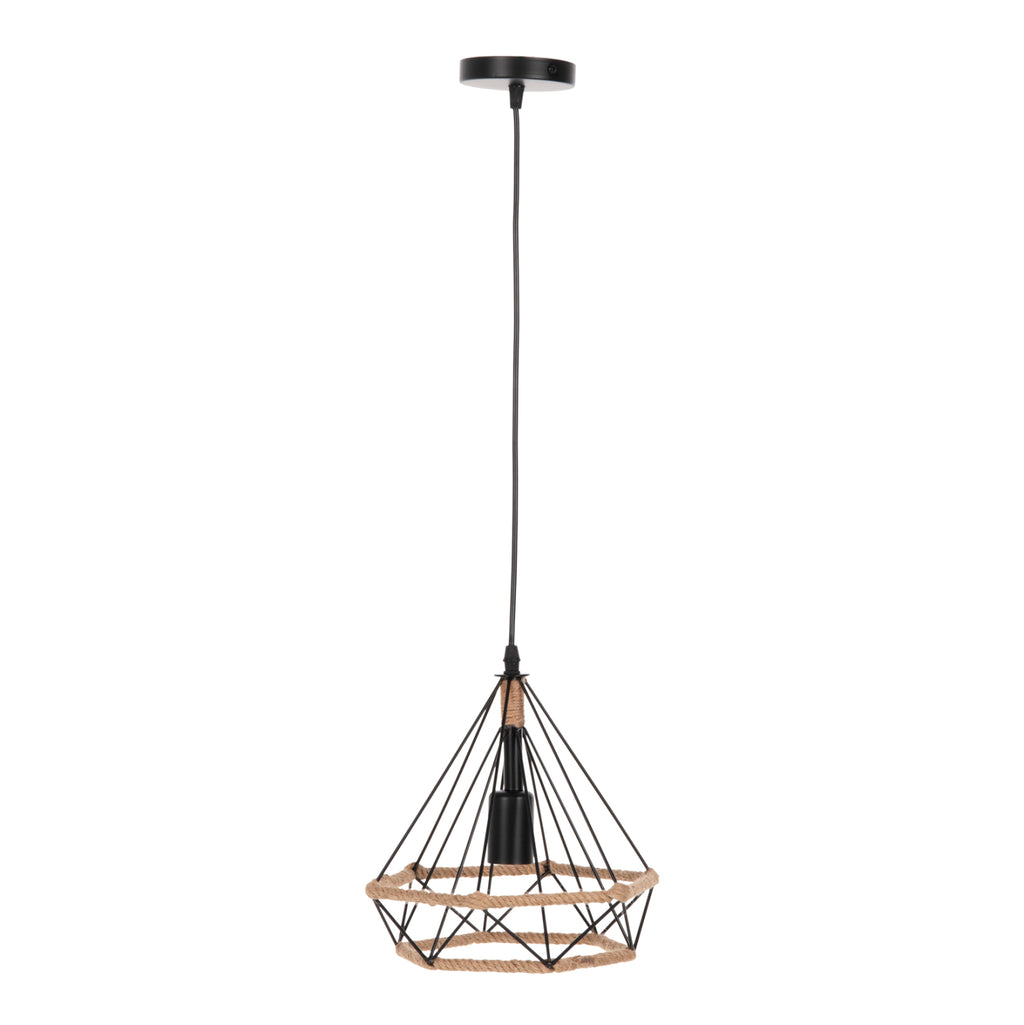 Оставете светлината да се разпространи в пространството с оригинална и елегантна висяща единична плафониера, завършваща вашата декорация. Пирамидалната форма с ЧЕРНИ метални пръти и въже е олицетворение на модерния дизайн.