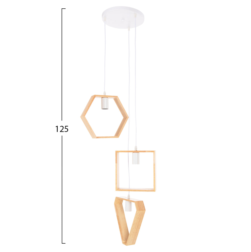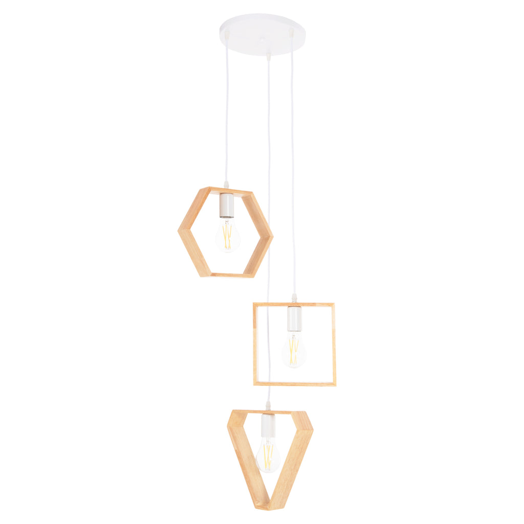 КГ4072---Запознайте се с новия оригинален и елегантен таван с 3 снимки в нашата гама и завършете своята декорация. Дървените геометрични форми на квадрат, шестоъгълник и триъгълник в различни височини и в естествен дървесен цвят, съчетани с бели висящи кабели са олицетворение на модерния дизайн при плафониери. ТЕХНИЧЕСКИ ХАРАКТЕРИСТИКИ: Цокъл на крушка: Е27 Цокъл с обикновена крушка Тип на крушката: Препоръчва се 20w LED Размери на цокъла: шестостен: 26x5x22.5H cm. квадрат: 20x5x20H см. триъгълник: 28.5x5x25H см. Обща височина: 125см. Има CE сертификат. ПОДДРЪЖКА: Най-важното за тази лампа е редовното й почистване от прах. Ако имате време, разбира се, използвайте влажна кърпа и я направете да изглежда като нова. *Крушките не са включени в цената ** Цветопредаването на продукта може леко да се различава от фотографското изображение на вашия екран. ***Лампата изисква сглобяване