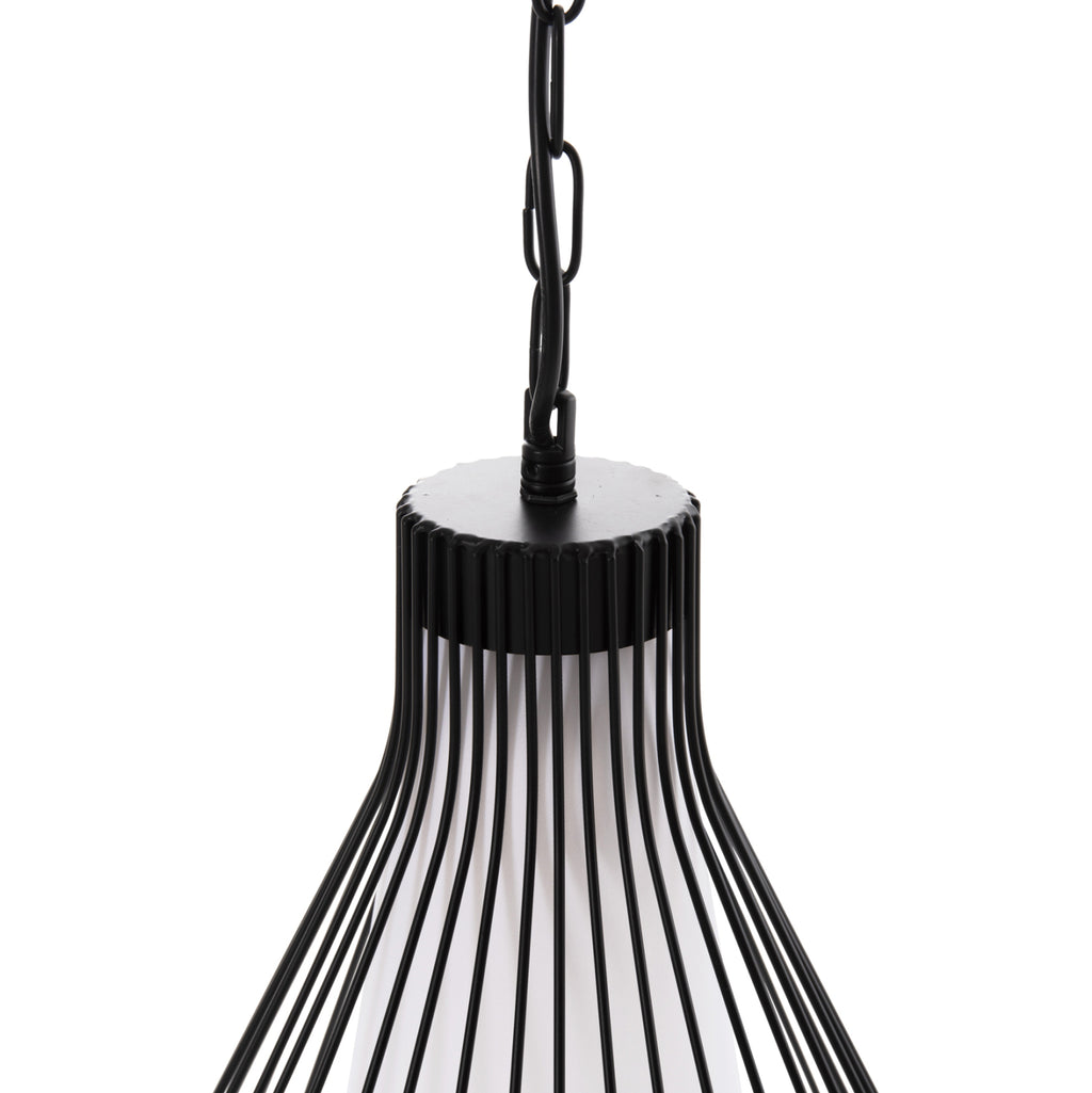 Открийте нашата нова висяща таванна лампа и завършете декорацията си. Това е красиво оформена ЧЕРНА метална лампа с бял капак около крушката и е най-новата тенденция при плафониери.