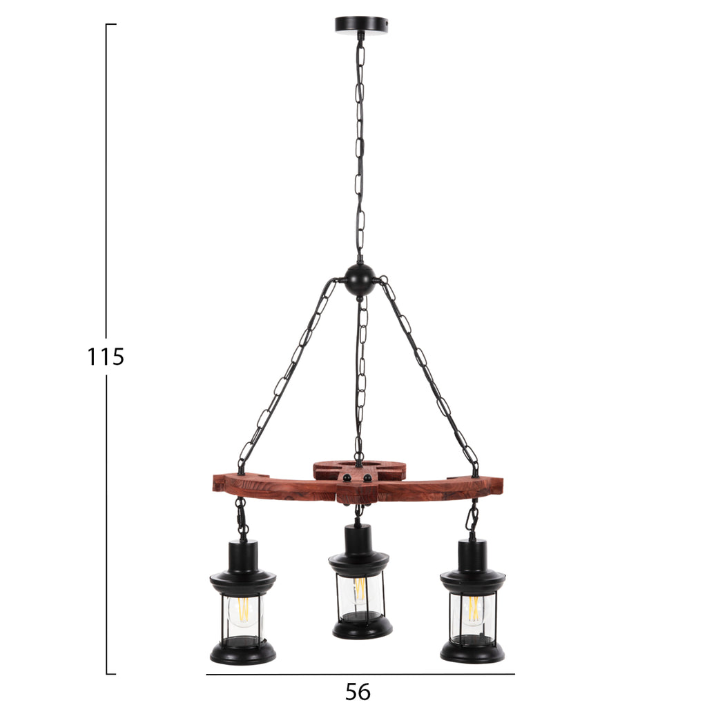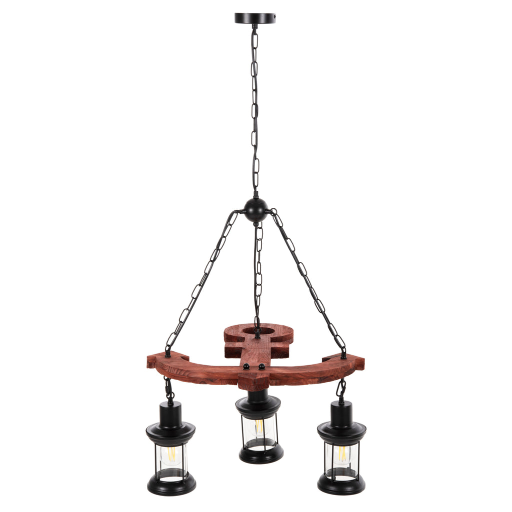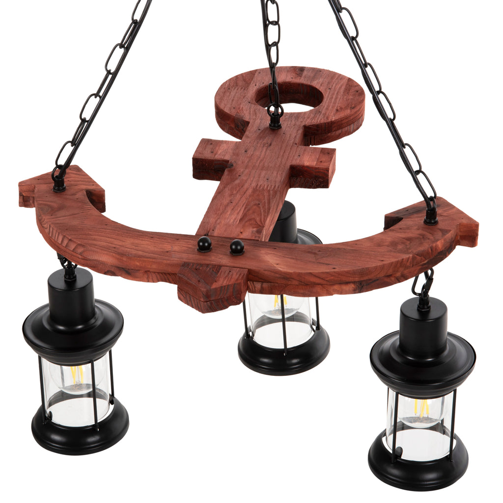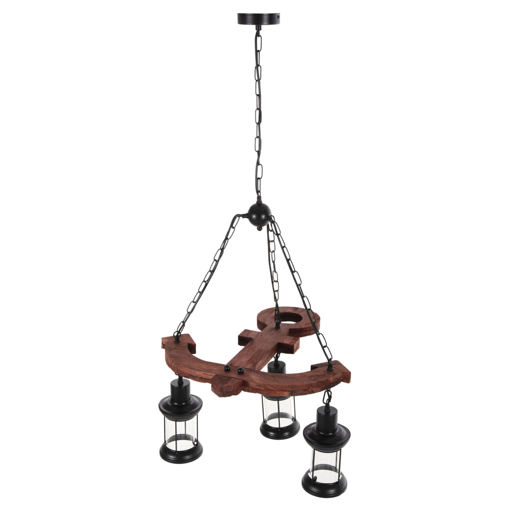 Открийте впечатляващата 3-светлинна таванна лампа КГ4115. Лампа, която ще бъде център на вниманието, благодарение на своя впечатляващ и вдъхновяващ дизайн. 3-те фенера, съдържащи крушките, висят на дървена котва, която от своя страна виси от тавана с вериги. ТЕХНИЧЕСКИ ХАРАКТЕРИСТИКИ: Цокъл на крушка: E27 Цокъл с обикновена крушка Тип на крушката: Препоръчително е да се използва LED 20w Размери: 56x51.5x115H cm. Шапка: 12x12x20.5H см. Има CE сертификат. ПОДДРЪЖКА: Най-важното за тази лампа е редовното й почистване от прах. Ако имате време, разбира се, използвайте влажна кърпа и я направете да изглежда като нова. *Крушките не са включени в цената ** Цветопредаването на продукта може леко да се различава от фотографското изображение на вашия екран. ***Лампата изисква сглобяване