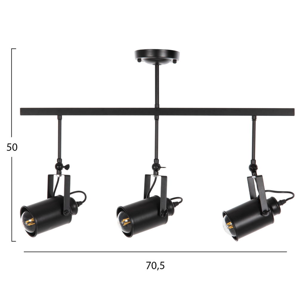 MH4124 е още едно красиво допълнение към нашата гама. Това са 3 броя прожектори с метална рамка в ЧЕРЕН цвят, които са монтирани последователно върху фиксирана метална греда, висяща от основата на тавана. Лампа, която може да осигури фокусирана светлина от 3 различни точки и всъщност има възможност за завъртане на всеки проектор поотделно за още по-фокусирано осветление. ТЕХНИЧЕСКИ ХАРАКТЕРИСТИКИ: Цокъл на крушка: E27 Цокъл с обикновена крушка Тип на крушката: Препоръчително е да се използва LED 20w Размери: 70.5x14x50H cm. Шапка: 8x8x13.5H см. CE сертифицирана ПОДДРЪЖКА: Най-важното нещо за тази конкретна лампа е нейното редовно почистване от прах. Ако имате време, разбира се, използвайте влажна кърпа и я направете да изглежда като нова. * Продуктът се доставя във фабрична опаковка, без крушки **Точното цветопредаване на продукта може леко да се различава от действителния продукт поради различните настройки на всеки монитор. ***Продуктът не е разглобен и се нуждае от сглобяване.
