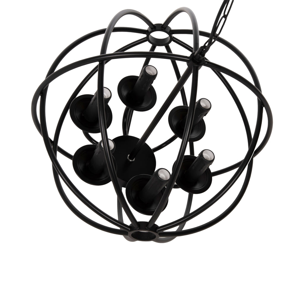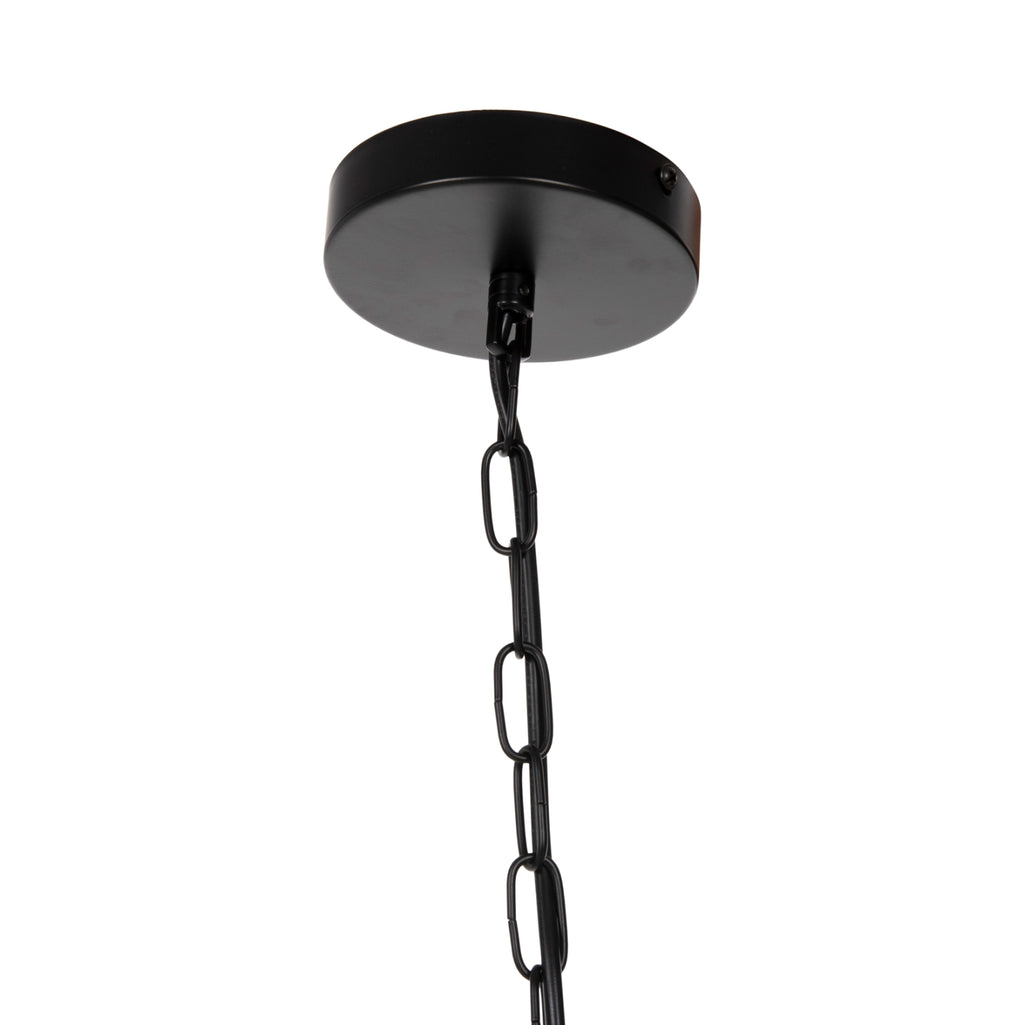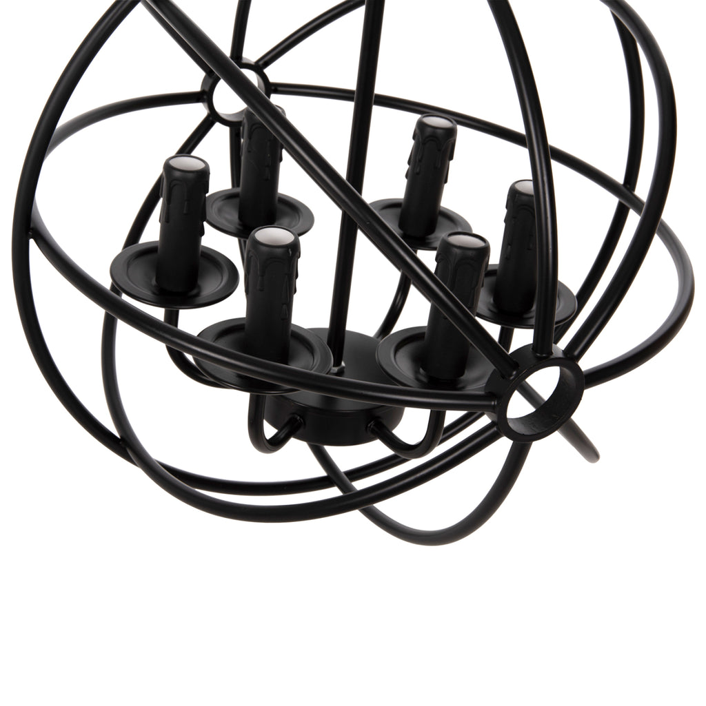 Оставете светлината да се разпространи в пространството с оригинална и елегантна 6-светлинна пенделка, която допълва декорацията ви. ЧЕРНАТА метална топка, висяща на верига, е олицетворение на модерния дизайн. ТЕХНИЧЕСКИ ХАРАКТЕРИСТИКИ: Цокъл на крушка: E27 Цокъл с обикновена крушка Тип на крушката: Препоръчва се LED 20w Размери: Φ42x108H cm. Размери на шапката: Φ42x44 см. МАТЕРИАЛ НА ИЗРАБОТКА: Цялата лампа е изработена от метал, както и кръглата основа за окачване на тавана. ПОДДРЪЖКА: Най-важното за тази конкретна лампа е редовното й почистване от прах. Ако имате време, разбира се, използвайте влажна кърпа и я направете да изглежда като нова. *Лампи не са включени в цената