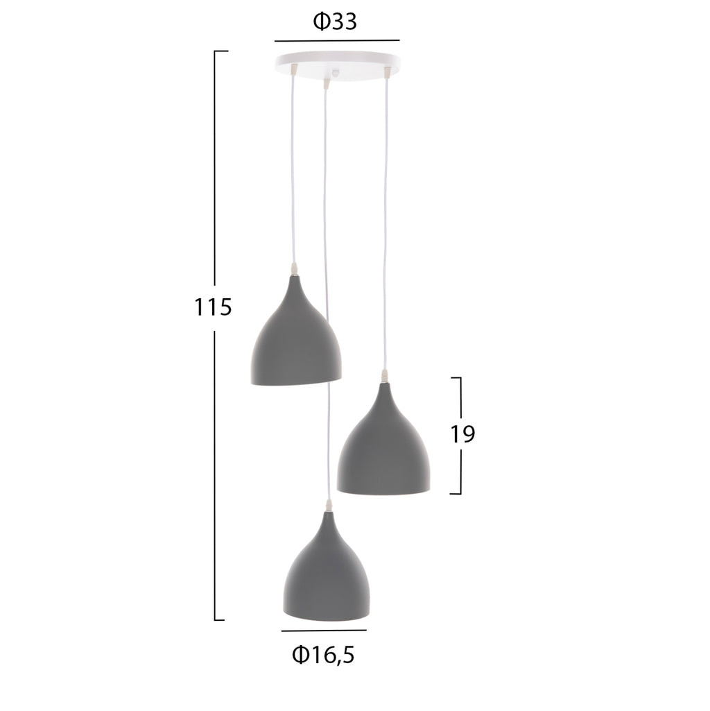 Открийте нашата нова 3-светлинна висяща таванна лампа и не се колебайте да я включите във вашия декор. Неутралният СИВ метал на цялата лампа и 3-те светлини на различни височини ще придадат свеж вид и усещане на пространството. Идеален както за дома, така и за бизнес помещения. ТЕХНИЧЕСКИ ХАРАКТЕРИСТИКИ: Цокъл на крушка: E27 Цокъл с обикновена крушка Тип на крушката: Препоръчително е да се използва LED 20w Размери: Φ33x33-115H cm. Размери на шапката: 16.5x19H см. CE сертифицирана ПОДДРЪЖКА: Най-важното нещо за тази конкретна лампа е нейното редовно почистване от прах. Ако имате време, разбира се, използвайте влажна кърпа и я направете да изглежда като нова. *Крушките не са включени в цената ** Цветопредаването на продукта може леко да се различава от фотографското изображение на вашия екран.