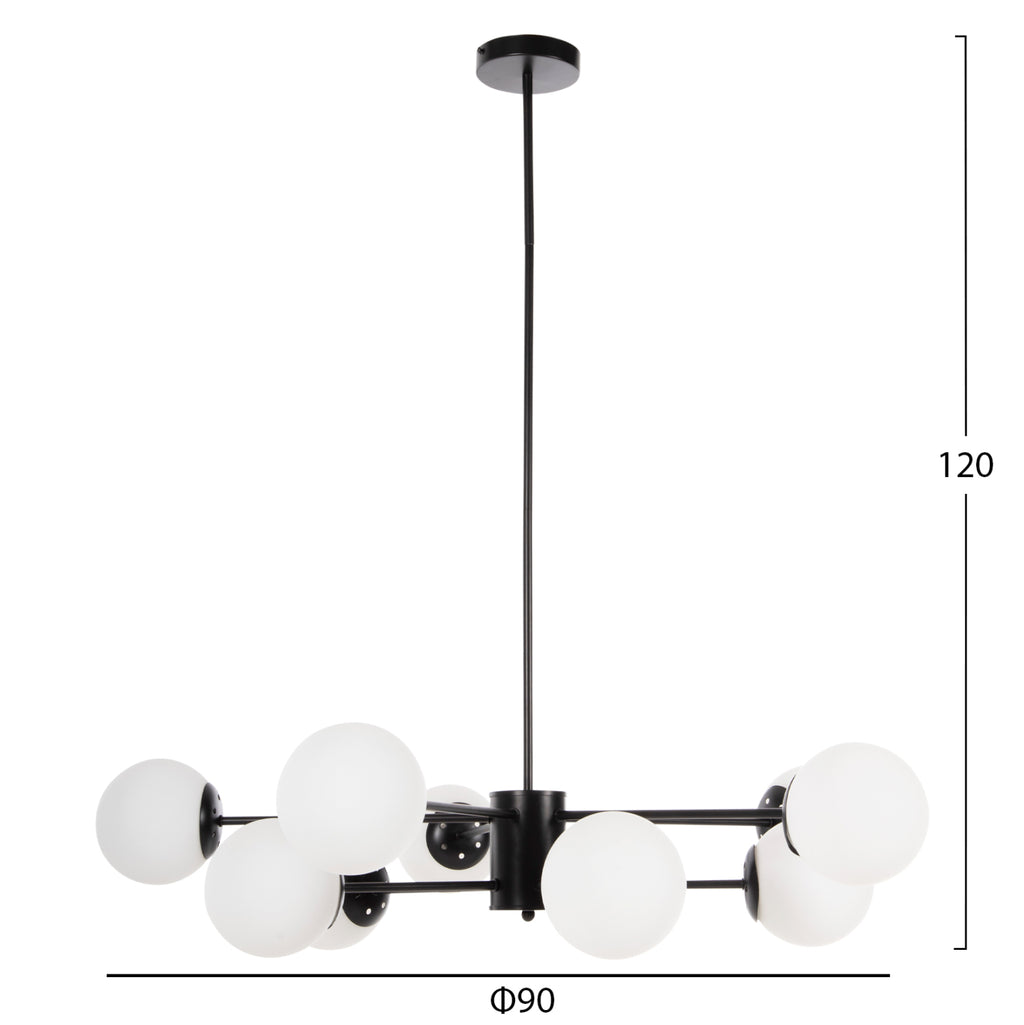 Многосветлият MH4170 е още едно допълнение към нашата гама. Той е черен металик и включва 10 крушки в бели стъклени сфери. Тази многофункционална лампа ще освети големи пространства с много светлина и ще впечатли с красивия си дизайн. ТЕХНИЧЕСКИ ХАРАКТЕРИСТИКИ: Цокъл за крушка: E27 Цокъл за обикновена крушка Тип на крушката: Препоръчва се 20w LED Размери на основата: Φ12см. Размери: 90x90x90H см. Обща височина: 97,5 см. ПОДДРЪЖКА: Най-важното за тази конкретна лампа е редовното й почистване от прах. Ако имате време, разбира се, използвайте влажна кърпа и я направете да изглежда като нова. * Продуктът се предлага във фабрична опаковка. **Точното цветопредаване на продукта може леко да се различава от действителния продукт поради различни настройки на монитора.