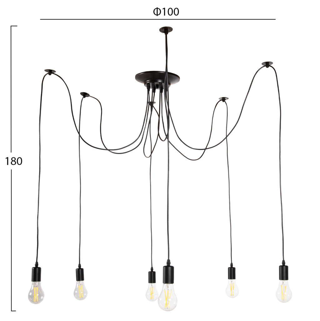 Многосветлият MH4175 е още едно допълнение към нашата гама. Има черна метална стойка за таван, от която висят 6 дълги черни жици, които завършват с 6 черни дюбела. Тези кабели могат да бъдат окачени по различни начини от тавана, придавайки ваш собствен стил на пространството. Тази буйна многофункционална лампа ще освети големи пространства с много светлина и ще впечатли със своята простота. ТЕХНИЧЕСКИ ХАРАКТЕРИСТИКИ: Цокъл за крушка: Е27 Цокъл за обикновена крушка Тип на крушката: Препоръчва се 20w LED Общи размери: Φ100x180H см. CE сертифицирана ПОДДРЪЖКА: Най-важното нещо за тази конкретна лампа е нейното редовно почистване от прах. Ако имате време, разбира се, използвайте влажна кърпа и я направете да изглежда като нова. * Продуктът се доставя във фабрична опаковка, без крушки **Точното цветопредаване на продукта може леко да се различава от действителния продукт поради различните настройки на всеки монитор. ***Продуктът не е разглобен и се нуждае от сглобяване.