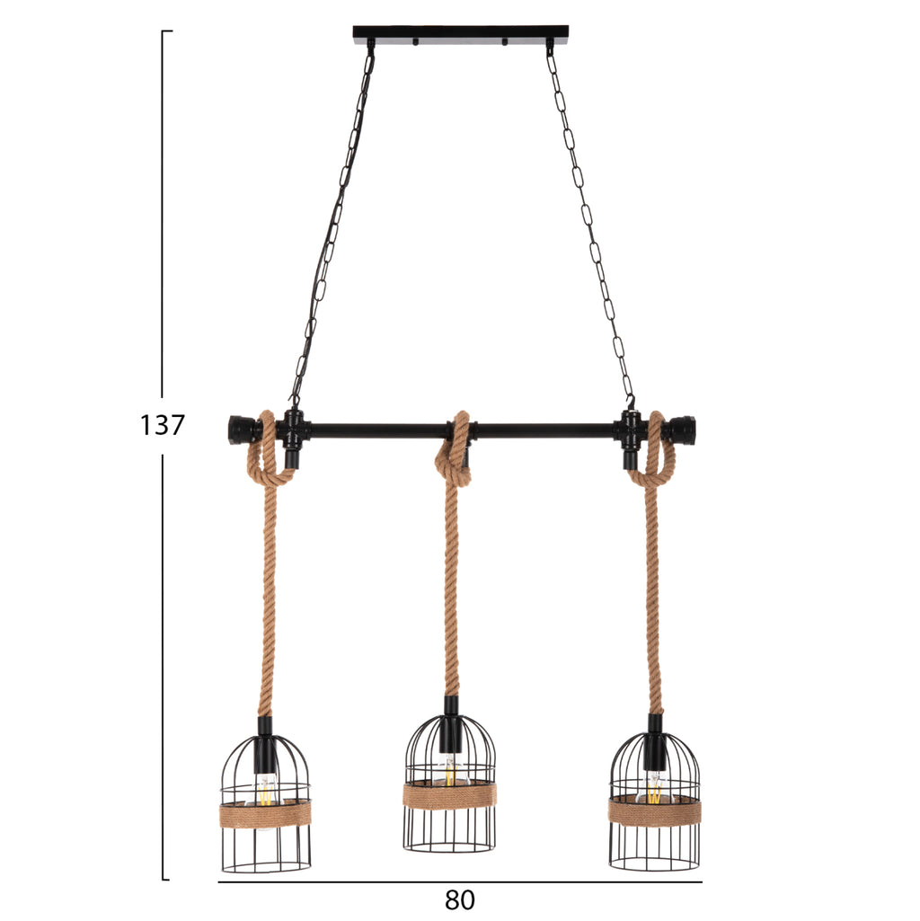 Оставете светлината да се разпространи в пространството с оригинална и елегантна висулка за таван, завършвайки вашата декорация. Тази 3-снимка виси на метална основа на тавана с вериги, които държат черна метална тръба. 3-те лампи в красиви капачки висят на тази тръба с въже. ТЕХНИЧЕСКИ ХАРАКТЕРИСТИКИ: Цокъл на крушка: Е27 Цокъл с обикновена крушка Тип на крушката: Препоръчително е да се използва LED 20w Габаритни размери: 80x14.5x137Y cm. Шапка: 14.5x14.5x25H см. Цокъл: 36x5x2Y Има CE сертификат ПОДДРЪЖКА: Най-важното нещо за тази лампа е нейното редовно почистване от прах. Ако имате време, разбира се, използвайте влажна кърпа и я направете да изглежда като нова. *Крушките не са включени в цената ** Цветопредаването на продукта може леко да се различава от фотографското изображение на вашия екран.