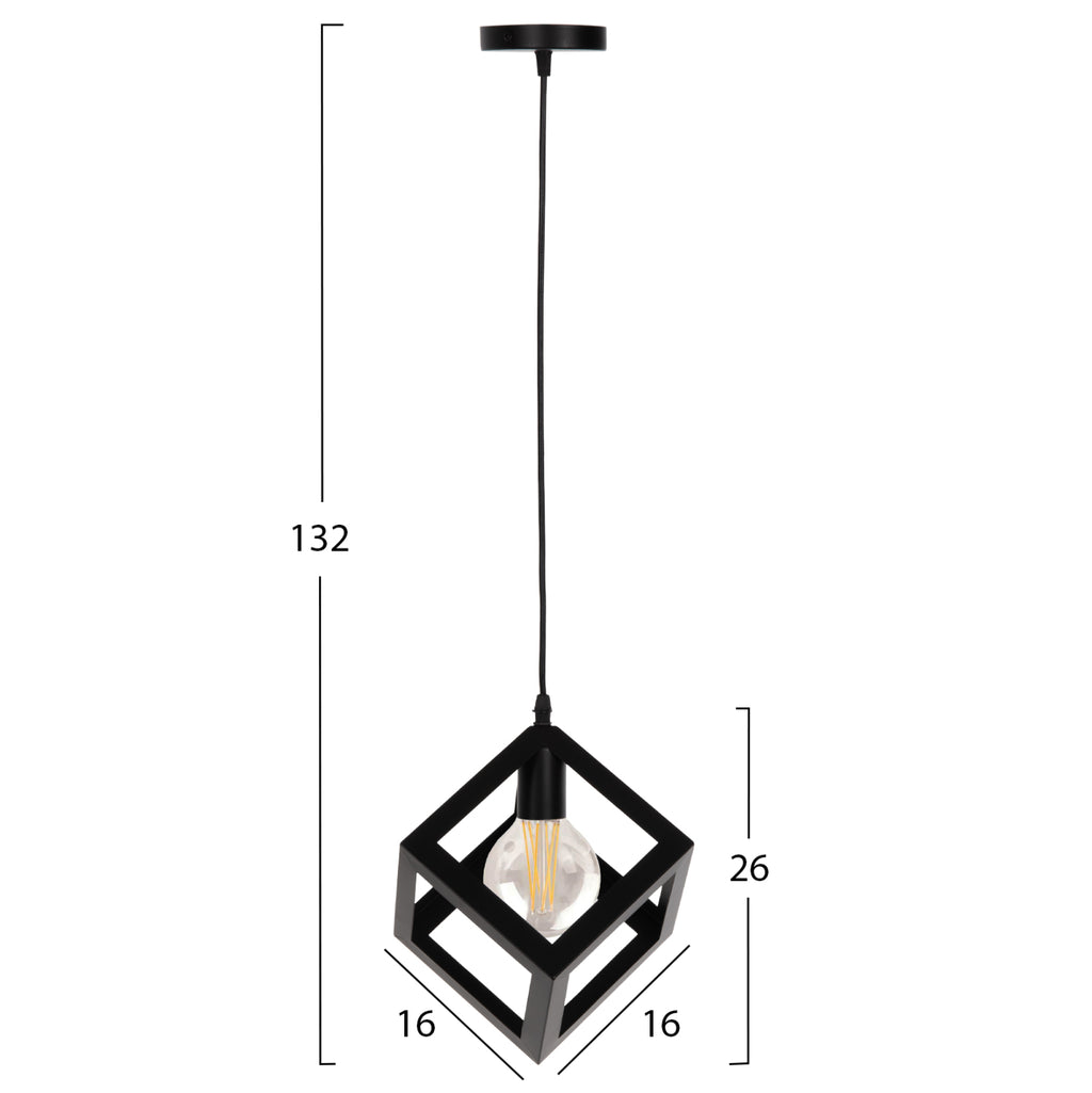 Открийте тази красива висяща таванна лампа от нашата нова гама, която допълва вашата декорация. ЧЕРНАТА шапка във формата на куб в модерен дизайн ще създаде красивата атмосфера, която винаги сте искали за вашето пространство. ТЕХНИЧЕСКИ ХАРАКТЕРИСТИКИ: Цокъл на крушка: E27 Цокъл с обикновена крушка Тип на крушката: Препоръчително е да се използва LED 20w Размери: 16x16x132H cm. Височина на шапката: 26см. МАТЕРИАЛ НА ИЗРАБОТКА: Цялата лампа е изработена от метал, както и кръглата основа за окачване на тавана. ПОДДРЪЖКА: Най-важното за тази конкретна лампа е редовното й почистване от прах. Ако имате време, разбира се, използвайте влажна кърпа и я направете да изглежда като нова. *Лампи не са включени в цената