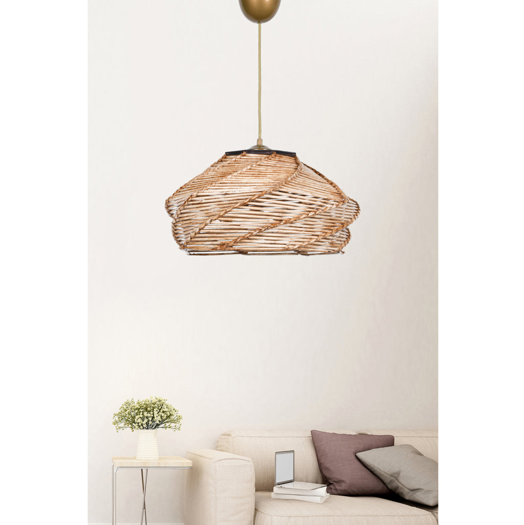 Ако желаете да украсите вашето пространство с лампа в бохо стил, която да покрие всички ваши нужди, това е правилният избор. Модерен висящ плафон, изработен от дървена рамка и покрит с бамбуков материал в естествен нюанс. Лампа, която ще внесе бохо нотка в пространството и ще промени настроението ви към по-добро. Дизайнът и формата, които има, правят светлината да се разсейва невероятно, когато лампата работи. Перфектен за вашия дом или бизнес. Приема крушка Е27 до 60W, която не е включена в комплекта. Размери: 36x36x65H см. Размери на шапката: 36x36x18H см. Европейско производство и произход. Продуктът се предлага във фабрична опаковка.