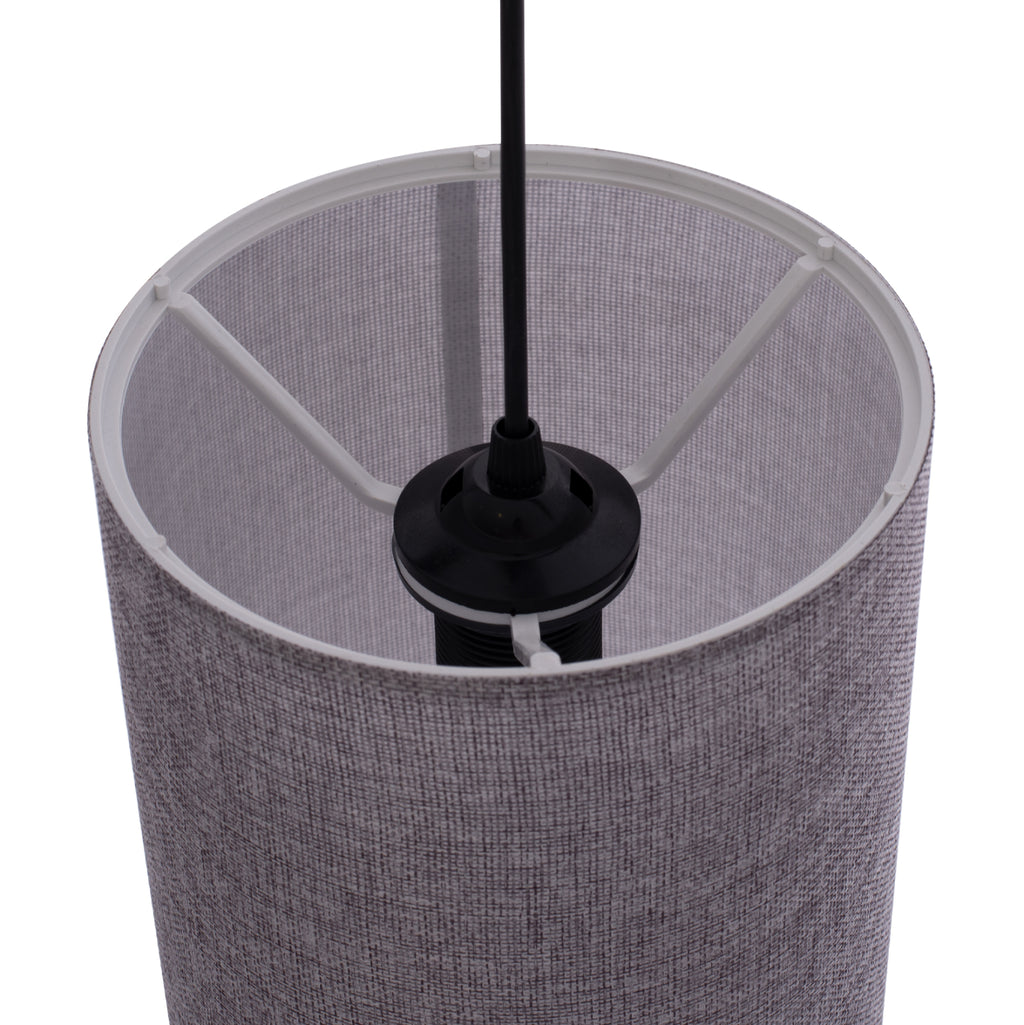Независимо дали е ден или нощ, дали е включена или изключена, висящата едносветлинна лампа с дългия тесен "барабан", изработен от качествена материя, предлага на вашето пространство моментално стилистично надграждане. Точно когато си помислихте, че нашата и вашата любов към всичко, свързано с текстила, не може да достигне нови граници, се появиха тези плафониери. Текстурата на тъканта може да е малко необичайна за пендел, но благодарение на бялата си вътрешна повърхност, тя придава на светлината мека светлина. Сивият цвят на "барабана" наистина създава впечатление за лукс без ограничения. ТЕХНИЧЕСКИ ХАРАКТЕРИСТИКИ: Цокъл на лампата: E14 Нормален цокъл Тип на лампата: Препоръчителна LED до 11w- Максимална 20w Размери на цокъла: 19x25см. Обща височина: 70 см. (регулируем) МАТЕРИАЛ НА ИЗРАБОТКА: Цилиндричният "барабан" на лампата е изработен от висококачествена материя. ПОДДРЪЖКА: Лампата не се нуждае от специална поддръжка. Достатъчно е почистване на прах на редовни интервали. Можете също така периодично да използвате влажна кърпа, за да почиствате лампата. ПРЕДИМСТВА: Естетическото превъзходство на тази лампа ще я накара да се открои във вашето пространство. Неговата регулируема височина може да предложи различни нива на яркост и визуално удоволствие. Освен в различни стаи във вашия дом, тя може да се побере и в професионални помещения като ресторанти, кафенета, хотели и др. Черният цвят на лампата с черните пръстени по вътрешните ръбове на "барабана" грабва окото, като същевременно може да се комбинира с много други материали и дизайни, за да подчертае напълно естетическите й качества.