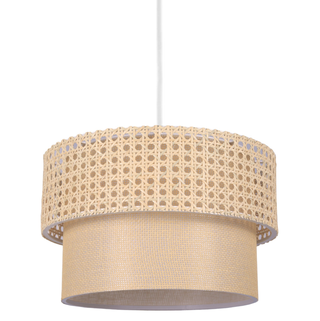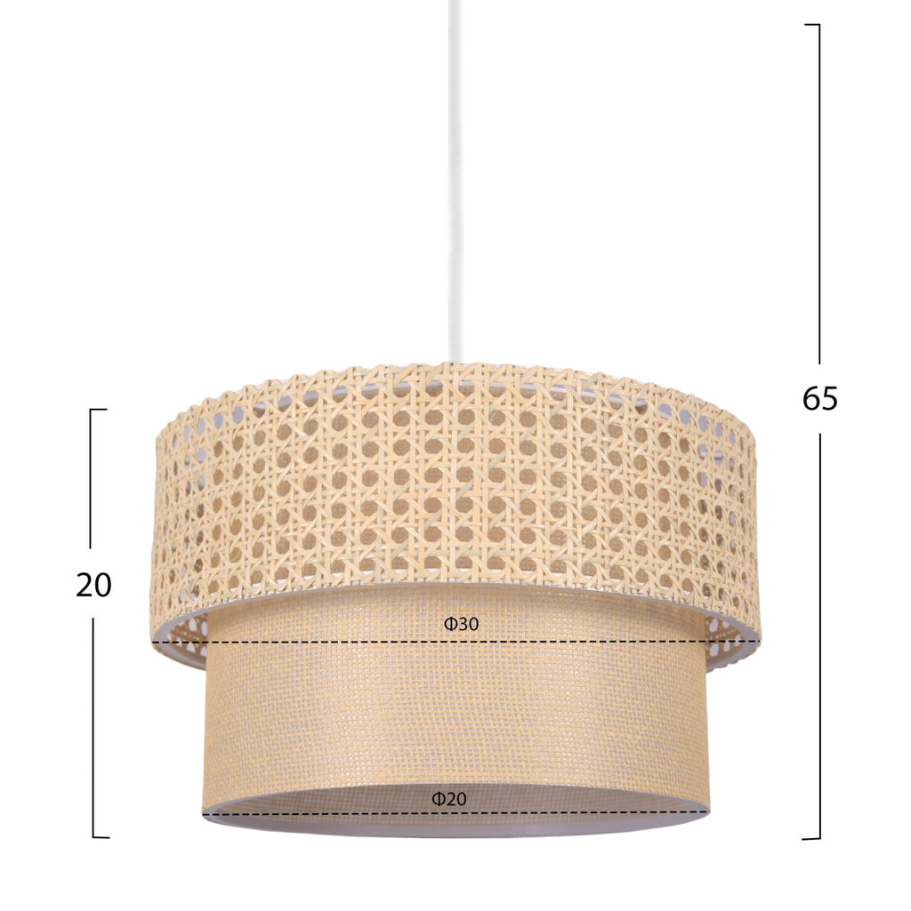 Независимо дали е ден или нощ, независимо дали е включена или изключена, висящата лампа с една светлина и двоен „барабан“ предлага на вашето пространство моментално стилистично надграждане. Точно когато си помислихте, че нашата и вашата любов към всичко, свързано с текстила, не може да достигне нови граници, се появиха тези плафониери. Текстурата на тъканта и ратановата тъкан отгоре може да е малко необичайна за пендел, но благодарение на светлия цвят на барабаните, тя придава на светлината мека светлина. Монохромността на двата "барабана" с различни строителни материали, наистина създава впечатление за неограничен лукс. ТЕХНИЧЕСКИ ХАРАКТЕРИСТИКИ: Тип цокъл на лампата: E27 Нормален цокъл Тип на лампата: Препоръчителна LED до 9w- Максимална 60w Размери на капачката: 30x20 см. (обща) Обща височина: 60-70 см. (регулируема) Има CE сертификат. МАТЕРИАЛ НА КОНСТРУКЦИЯТА: "Барабаните" на лампата са изработени от тъкан и ратан, докато рамката е изработена от лазерно изрязан електростатичен метал, предлагащ издръжливост и лекота на почистване. ПОДДРЪЖКА: Лампата не се нуждае от специална поддръжка. Достатъчно е почистване на прах на редовни интервали. ПРЕДИМСТВА: Естетическото превъзходство на тази лампа ще я накара да се открои във вашето пространство, защото има опростен, но артистичен външен вид. Металната му рамка е перфектно изработена, а барабанът е с два ринга. Външният ринг е изработен от бежова ратанова мрежа, а вътрешният ринг е изработен от плат в цвят бежов пясък. Резултатът е изключително елегантен на вид. Успява да комбинира атрактивен модерен чар с идеалния размер, като по този начин добавя красива декорация към вашия таван. Неговата регулируема височина може да предложи различни нива на яркост и визуално удоволствие. Освен в различни стаи във вашия дом, тя може да се побере и в професионални пространства като ресторанти, кафенета, хотели и др. Едноцветното впечатление на лампата и дизайна грабват окото, но в същото време изисква специална декоративна кохерентност, за да подчертае напълно естетическите си качества.