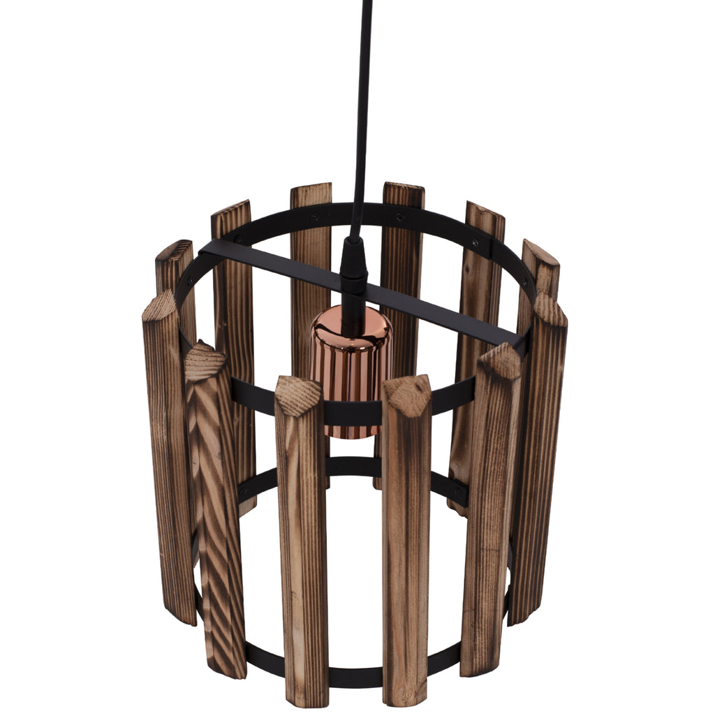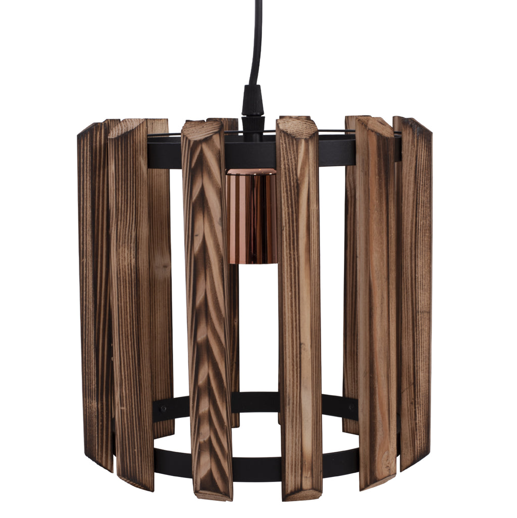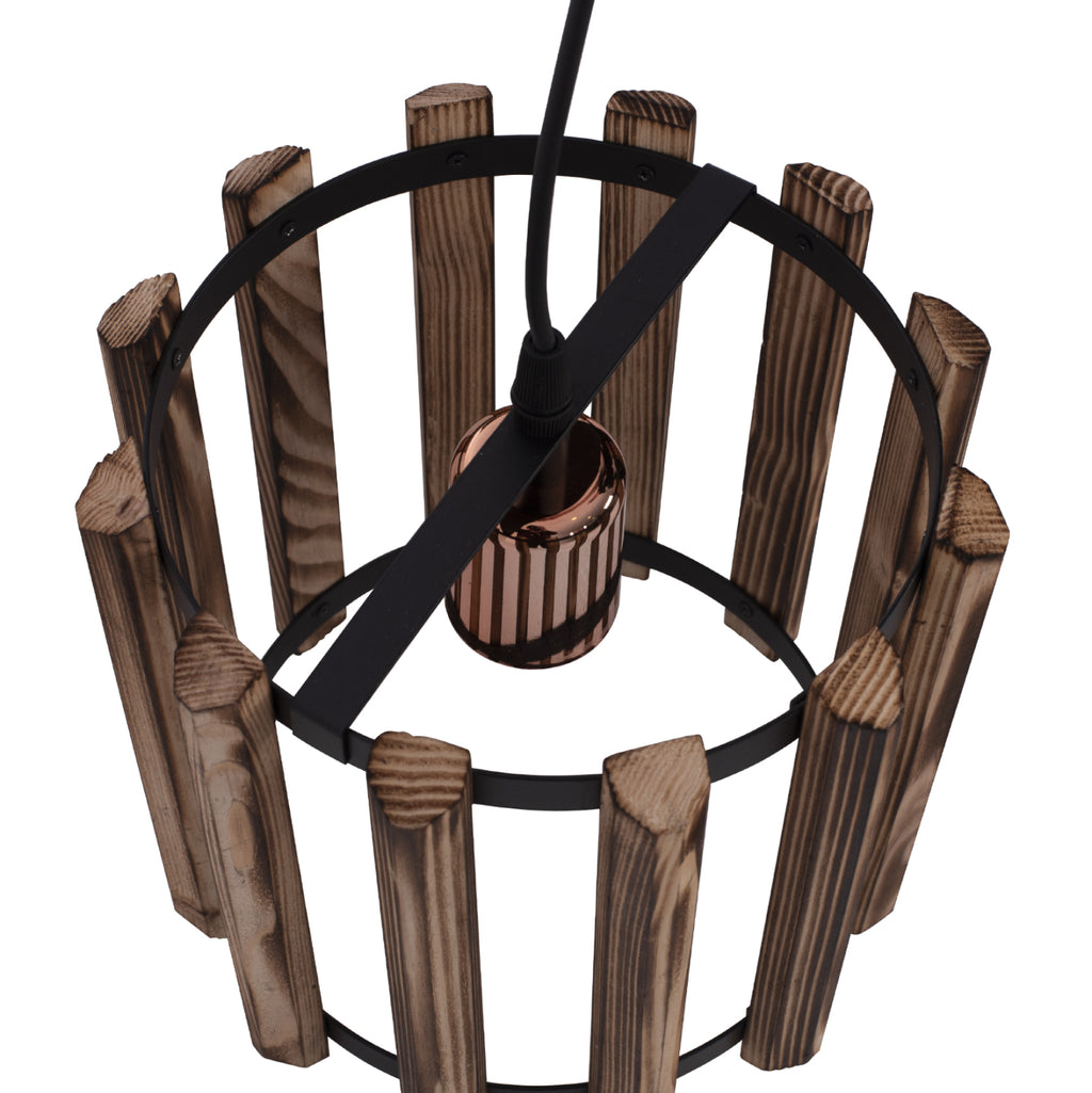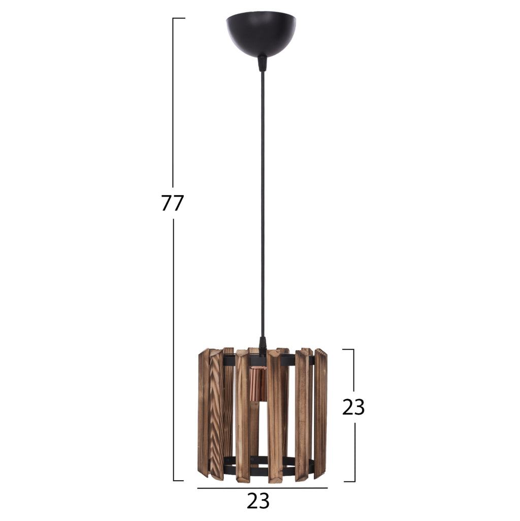 КГ7704.01-пандел ----Оставете светлината да се разпространи в пространството с оригинална единична таванна лампа, завършваща вашата декорация. "Шапката" на лампата се състои от два черни метални пръстена, върху които вертикално са монтирани дървени пръчки в естествен цвят. Характерното за тази лампа е, че абажурът е в блестящ бронзов цвят, създавайки специален двуцветен цвят с останалата част от конструкцията. ТЕХНИЧЕСКИ ХАРАКТЕРИСТИКИ: Тип на цокъла на крушката: E27 Нормален цокъл на крушката Тип на крушката: Препоръчително е да се използва LED Размери на цокъла: Φ23x23-77H cm. ПОДДРЪЖКА: Най-важното за тази конкретна лампа е редовното й почистване от прах. Ако имате време, разбира се, използвайте влажна кърпа и я направете да изглежда като нова. ПРЕДИМСТВА: Това е модерен пендел с регулируема височина според вашите характеристики. Разпръскването на светлината се осъществява във всяка посока, като благодарение на дизайна си тя е идеална за множество пространства, както във вашия дом, така и в професионални пространства като ресторанти, кафенета, хотели и др. Тази лампа хваща окото, но в същото време изисква специална декоративна кохерентност, за да подчертае напълно естетическите си качества. Лампата не е включена в цената