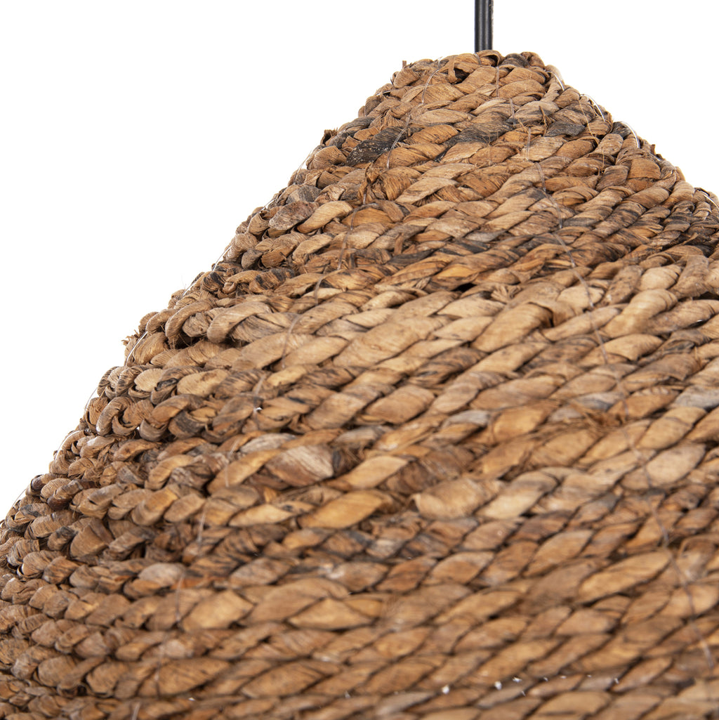 КГ7762- Висяща лампа---- Ако искате да украсите вашето пространство с лампа в бохо стил, това е типичен избор. Представлява едносветлинна лампа с "шапка" във формата на кръгла пирамида, изработена от манилски конопени влакна в естествен цвят. Особеното при тази лампа е, че в горната част на шапката влакната са вплетени като въже, което придава друга естетика на лампата. ТЕХНИЧЕСКИ ХАРАКТЕРИСТИКИ: Цокъл за лампа: E27 Нормален Цокъл Размери: Φ50x35-120Y см. CE сертифициран КОНСТРУКТИВЕН МАТЕРИАЛ: „Шапката“ е направена от влакна от абака или манилски коноп. Манилският коноп е вид ярко оцветено влакно, получено от Musa textilis (роднина на ядливите банани), наричано още манилски коноп, както и абака. Абаката е изключително здраво влакно, много скъпо и в пъти по-скъпо от дървесната маса. Името се отнася до столицата на Филипините, един от основните производители на канабис, Манила. Отглеждането на растения абака може да намали ерозията, да увеличи биоразнообразието и да обогати почвата. И накрая, той е устойчив на вода и влага. ПОДДРЪЖКА: Лампата не се нуждае от специална поддръжка. Достатъчно е почистване на прах на редовни интервали. ПРЕДИМСТВА: Естетическото превъзходство на тази лампа ще я накара да се открои във вашето пространство. Идеален както за дома, така и за бизнес помещения като ресторанти, кафенета, хотели и др. Двуцветният цвят на влакната в натуралната палитра хваща окото и може веднага да промени настроението ви. Светлината се разпръсква красиво в пространството предимно надолу. В същото време може да се комбинира с много други материали и дизайни, за да подчертае напълно естетическите си качества.