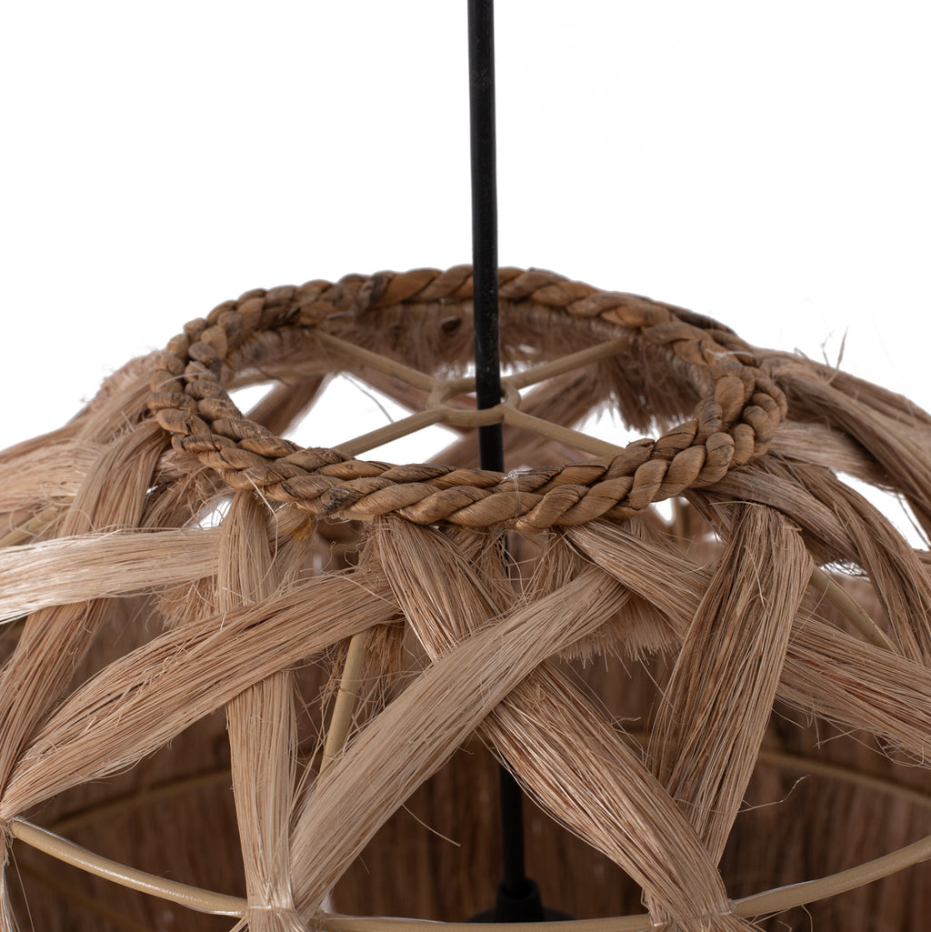 КГ7779- Висяща лампа---- Ако искате да украсите вашето пространство с лампа с естествени материали, това е типичен избор. Представлява едносветлинна лампа със сферична "шапка" от конопени влакна Manila в естествен цвят. Красива лампа, която ще зарадва любителите на този стил на декорация. ТЕХНИЧЕСКИ ХАРАКТЕРИСТИКИ: Цокъл за лампа: Е27 Нормален Цокъл Размери: 44x44x46Y см. Обща височина: 80 см. CE сертифициран КОНСТРУКТИВЕН МАТЕРИАЛ: „Шапката“ е направена от влакна от абака или манилски коноп. Манилският коноп е вид ярко оцветено влакно, получено от Musa textilis (роднина на ядливите банани), наричано още манилски коноп, както и абака. Абаката е изключително здраво влакно, много скъпо и в пъти по-скъпо от дървесната маса. Името се отнася до столицата на Филипините, един от основните производители на канабис, Манила. Отглеждането на растения абака може да намали ерозията, да увеличи биоразнообразието и да обогати почвата. И накрая, той е устойчив на вода и влага. ПОДДРЪЖКА: Лампата не се нуждае от специална поддръжка. Достатъчно е почистване на прах на редовни интервали. ПРЕДИМСТВА: Естетическото превъзходство на тази лампа ще я накара да се открои във вашето пространство. Идеален както за дома, така и за бизнес помещения като ресторанти, кафенета, хотели и др. Неговият уникален дизайн хваща окото и може моментално да промени настроението ви. Светлината се разпръсква красиво в пространството през влакната на сферата и в същото време лампата може да се комбинира с много други материали и дизайни, за да се подчертаят напълно нейните естетически достойнства.