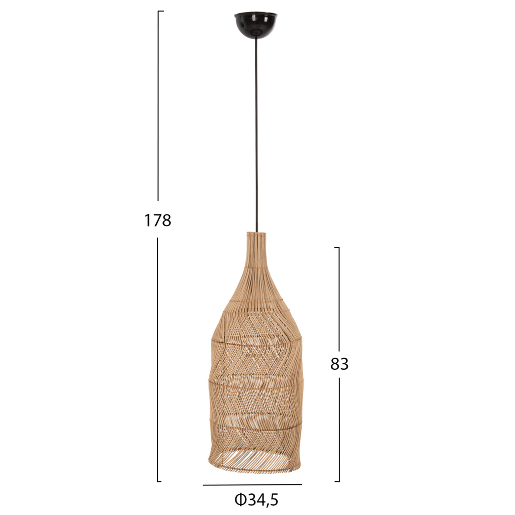 КГ7886- Висяща лампа---- Ако искате да украсите вашето пространство с лампа в много специален стил, не търсете повече! MH7886 е едносветова лампа с дълга цилиндрична "шапка" във формата на бутилка, изработена от естествен ратан в ЕСТЕСТВЕНИЯ си цвят с влакна подредени на зиг-заг. ТЕХНИЧЕСКИ ХАРАКТЕРИСТИКИ: Цокъл за лампа: Е27 Нормален Цокъл Размери: Φ34.5x83H см. Обща височина: 178 см. CE сертифициран МАТЕРИАЛ НА КОНСТРУКЦИЯТА: "Шапката" е изработена от РАТАН с отлично качество. Ратанът е най-добрият и използван естествен материал за различни конструкции. Ратанът, отглеждан в Северна Азия, е най-висококачественият и най-издръжлив материал от подобни, отглеждани в други региони. С повече от 600 различни вида РАТАНА може да се разграничи като силно влакнесто растение, подобно на бамбука и широко използвано, защото е леко, издръжливо, гъвкаво и привлекателно. ПОДДРЪЖКА: Лампата не се нуждае от специална поддръжка. Достатъчно е почистване на прах на редовни интервали. ПРЕДИМСТВА: Тази висяща лампа е толкова стилна, колкото и красива. Идеален за дома, но и за бизнес зони като ресторанти, кафенета, хотели и др. Дизайнът хваща окото и може моментално да промени настроението ви. Светлината се разпръсква красиво в пространството във всяка посока. Атрактивната му цена и фактът, че е готов за доставка, го правят най-добрият избор за осветяване на вашето пространство!