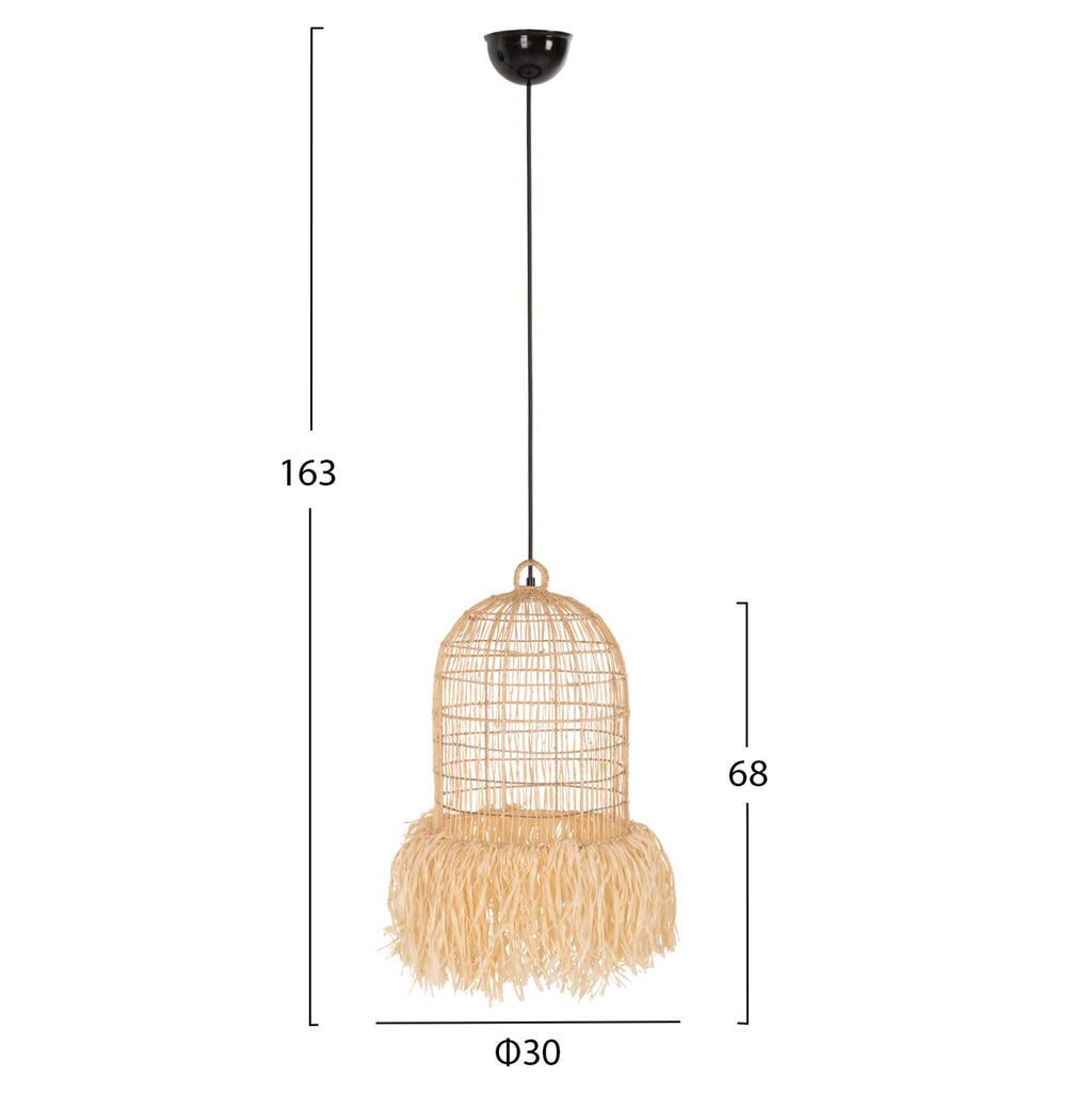 HΜ7891--Ако искате да украсите вашето пространство с лампа в модерен стил, това ново допълнение към нашата гама ще ви зарадва. Представлява едносветова лампа с капачка във формата на клетка с ресни в долната част, изработена от влакна от палмови листа в НАТУРАЛЕН цвят. Той е красив и определено може да промени образа на вашето пространство към по-добро. ТЕХНИЧЕСКИ ХАРАКТЕРИСТИКИ: Цокъл на лампата: E27 Нормален цокъл Тип на лампата: Препоръчителна LED до 20w- Максимална 60w Размери: Φ30x37H cm. Височина на дръжката: 5 см. Дължина на ресните: 31 см. Дължина на кабела: 95см. Обща височина: 163 см. CE сертифициран КОНСТРУКТИВЕН МАТЕРИАЛ: Лампата е направена от изсушени влакна от палмови листа, известни още като Table Palm или Fan Palm. Това е много привлекателна и елегантна палма с големи, лъскави ветрилообразни листа и бодливи стъбла. Расте в Югоизточна Азия и Нова Гвинея. ПОДДРЪЖКА: Лампата не се нуждае от специална поддръжка. Достатъчно е почистване на прах на редовни интервали. ПРЕДИМСТВА: Елегантността на тази лампа ще я накара да се открои във вашето пространство. Освен в различни стаи във вашия дом, той може да се побере и в професионални помещения като ресторанти, кафенета, хотели и др. Светлината се разпръсква невероятно в пространството през мрежата, като в същото време може да се комбинира с много други материали и дизайни.
