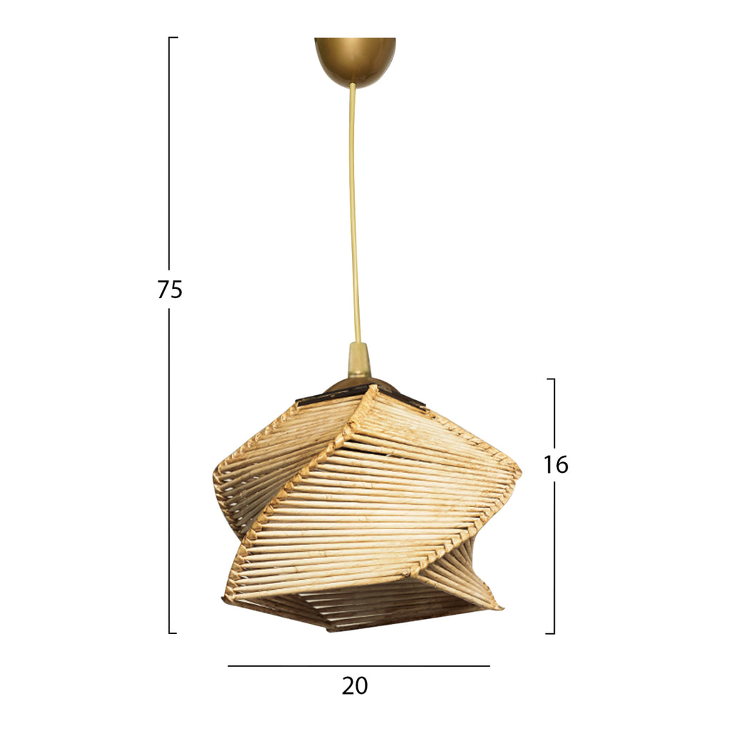 Плафон, в естествен нюанс. Ако желаете да украсите вашето пространство с лампа в бохо стил, която да покрие всички ваши нужди, това е правилният избор. Модерен висящ плафон, изработен от бамбуков материал в естествен нюанс. Дизайнът и формата, които има, правят светлината да се разсейва невероятно, когато лампата работи. Перфектен за вашия дом или бизнес. Размери: 20х20х75см Европейско производство и произход. Продуктът се предлага във фабрична опаковка.