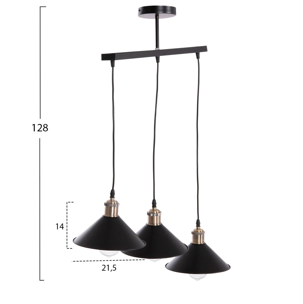 Пенделът BELL с три лампи е красив пендел с черна основа и черни висящи кабели. Лампите са с различна височина, а капачките са метални с фини детайли в светло меден цвят в горната част. **ДОПЪЛНИТЕЛЕН СЪВЕТ: Пакетът включва и допълнителна шайба, която се монтира към медния дюбел и ви позволява да монтирате друга капачка по ваш избор (като глобус), премахвайки черната капачка, предоставена с опаковката** ТЕХНИЧЕСКИ ХАРАКТЕРИСТИКИ: Тип на цокъла на крушка: E27 Нормален цокъл на крушка Тип на крушката: Препоръчва се LED Размери: Φ21,5x128H cm. Основа: 20x5x15H см. Шапки: Φ21.5x14H см. CE сертифицирана ПОДДРЪЖКА: Най-важното нещо за тази конкретна лампа е нейното редовно почистване от прах. * Продуктът се предлага във фабрична опаковка, без крушки. **Точното цветопредаване на продукта може леко да се различава от действителния продукт поради различни настройки на монитора. ***Продуктът е в разглобен вид и изисква монтаж и монтаж от електротехник.