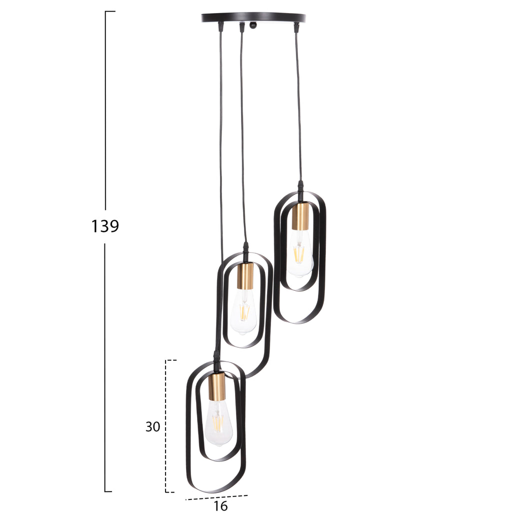 Пенделът BIUT е пендел с три лампи на различни височини с черна кръгла основа и черни висящи кабели. Лампите са поставени в златиста рамка, а това, което грабва окото, е минималистичният дизайн на шапките с двете метални рамки. ТЕХНИЧЕСКИ ХАРАКТЕРИСТИКИ: Цокъл за крушка: E27 Цокъл за обикновена крушка Тип на крушката: Препоръчително е да се използва LED Размери: Φ23x139H cm. Шапки: 16х4х30Н см. CE сертифицирана ПОДДРЪЖКА: Най-важното нещо за тази конкретна лампа е нейното редовно почистване от прах. * Продуктът се предлага във фабрична опаковка, без крушки. **Точното цветопредаване на продукта може леко да се различава от действителния продукт поради различни настройки на монитора. ***Продуктът е в разглобен вид и изисква монтаж и монтаж от електротехник.