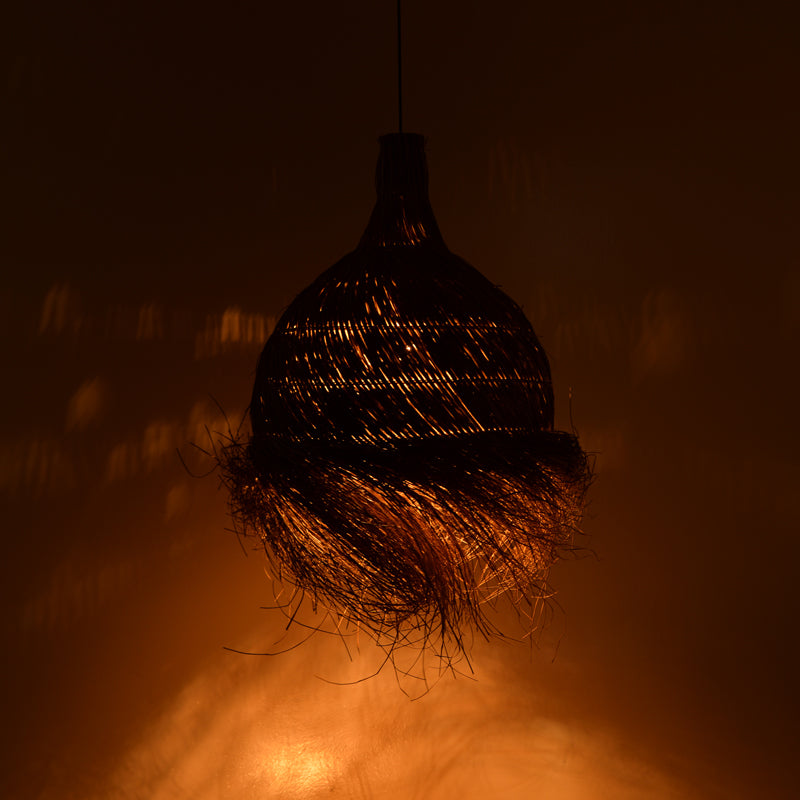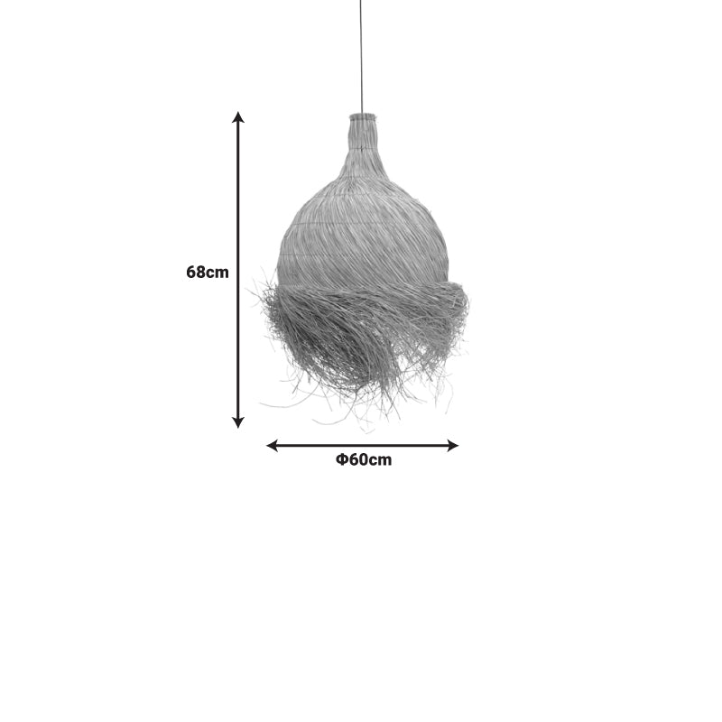 Таванната лампа Cazin, изработена от естествени влакна Mendong, е уникална комбинация от естествена красота и модерен дизайн. Текстурата и геометричната форма на влакното създават топла и приветлива околна светлина, добавяйки екзотична естетическа нотка към всяко пространство.