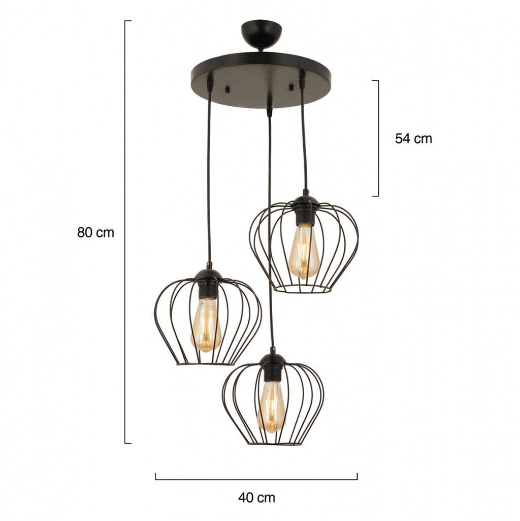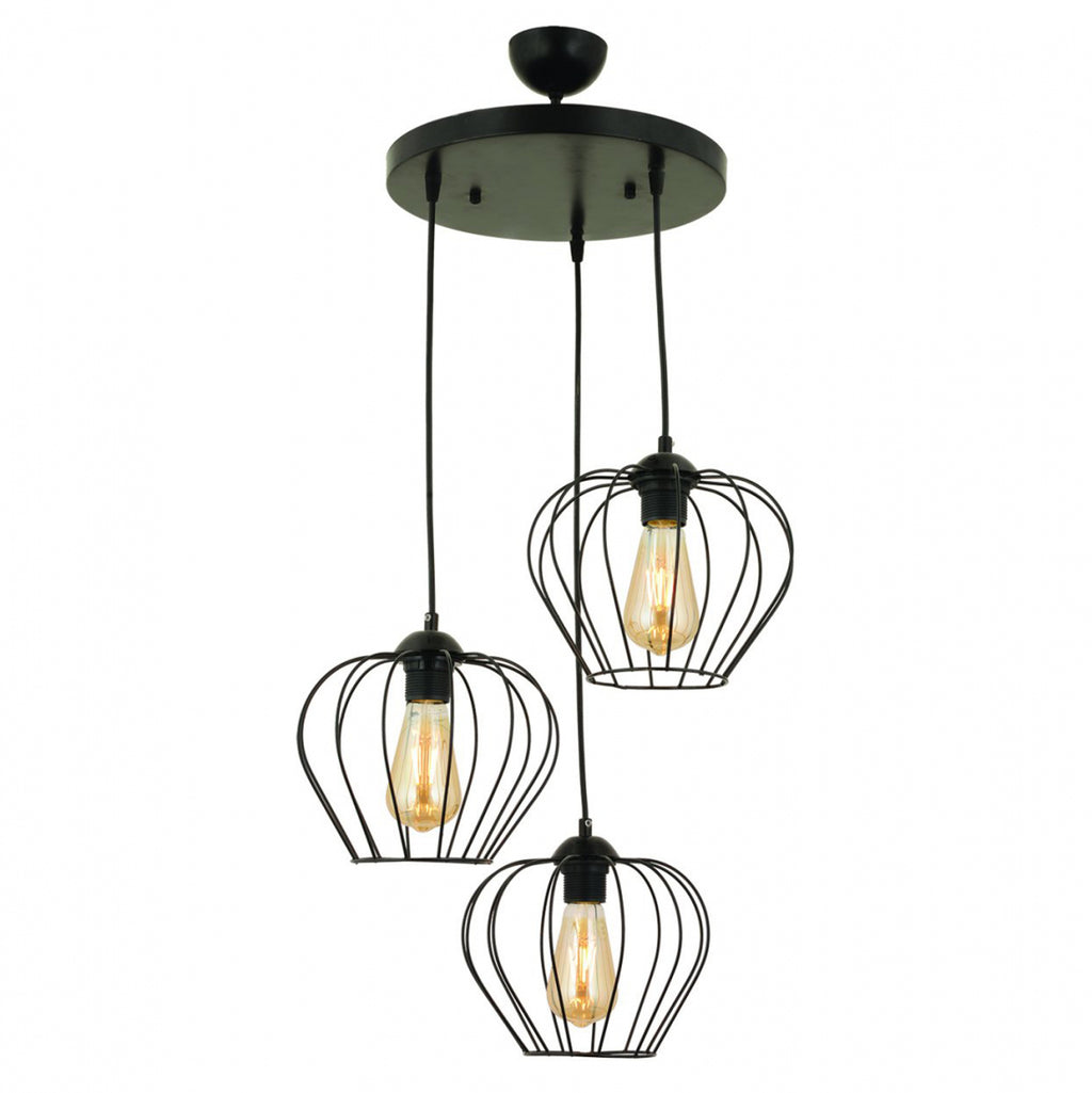 Плафон три лампи в черен абажур. Лампа с изключително качество, с подчертан дизайн, оригинален и елегантен стил, за обновяване на декорацията на вашето лично пространство. Изработена от метална рамка, изключително издръжлива. Приема E27, 3x60W крушки, които не са включени в комплекта. Има възможност за използване на LED лампи. Размери: 40х80Н см. Европейско производство и произход. Продуктът се предлага във фабрична опаковка.