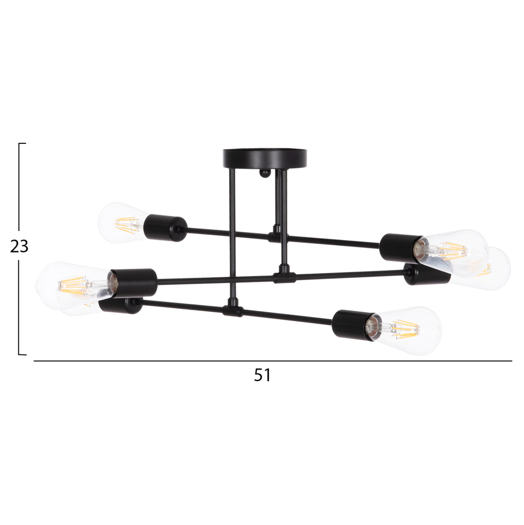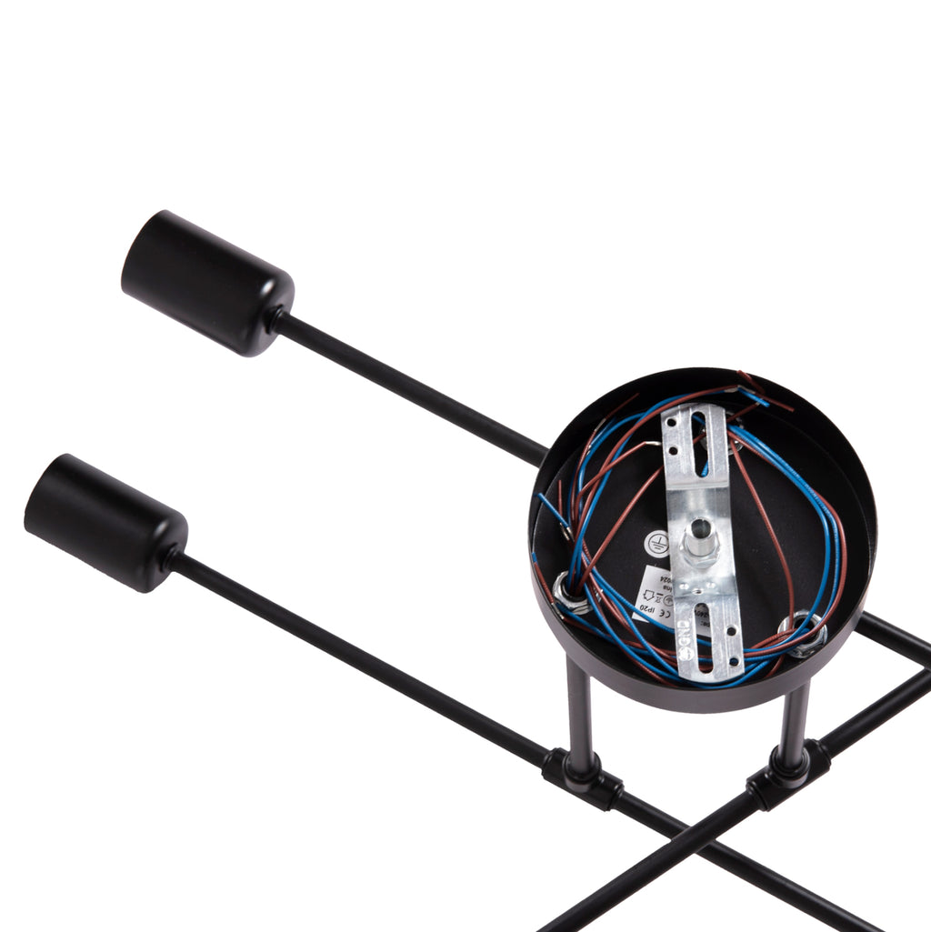 Фиксираният пендел LIGHTY е метален с черна основа и черни хоризонтални рамена в модерен дизайн. На 6-те края се поставят 6-те крушки без фасунги. Тази лампа ще озари с много светлина желаното от вас пространство и ще впечатли с красивия си дизайн. ТЕХНИЧЕСКИ ХАРАКТЕРИСТИКИ: Цокъл на крушката: E27 Цокъл с обикновена крушка Тип на крушката: Препоръчително е да се използва LED Размери: 51x51x23см. CE сертифицирана ПОДДРЪЖКА: Най-важното нещо за тази конкретна лампа е нейното редовно почистване от прах. Ако имате време, разбира се, използвайте влажна кърпа и я направете да изглежда като нова. * Продуктът се предлага във фабрична опаковка, без крушки. **Точното цветопредаване на продукта може леко да се различава от действителния продукт поради различни настройки на монитора. ***Продуктът е в разглобен вид и изисква монтаж и монтаж от електротехник.