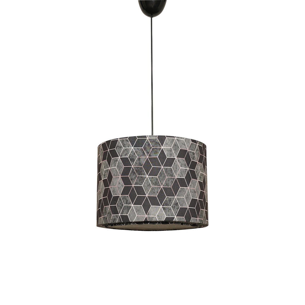 Ако искате да украсите вашето пространство с лампа, която да покрие всички ваши нужди, това е правилният избор. Модерен висящ плафон, изработен от метална конструкция и тапициран с дамаска с геометрична шарка в черни и сиви нюанси. Приема крушка Е27 до 60W, която не е включена в комплекта. Размери: 28x28x65H см. Размери на шапката: 28x28x20H см. Европейско производство и произход. Продуктът се предлага във фабрична опаковка.