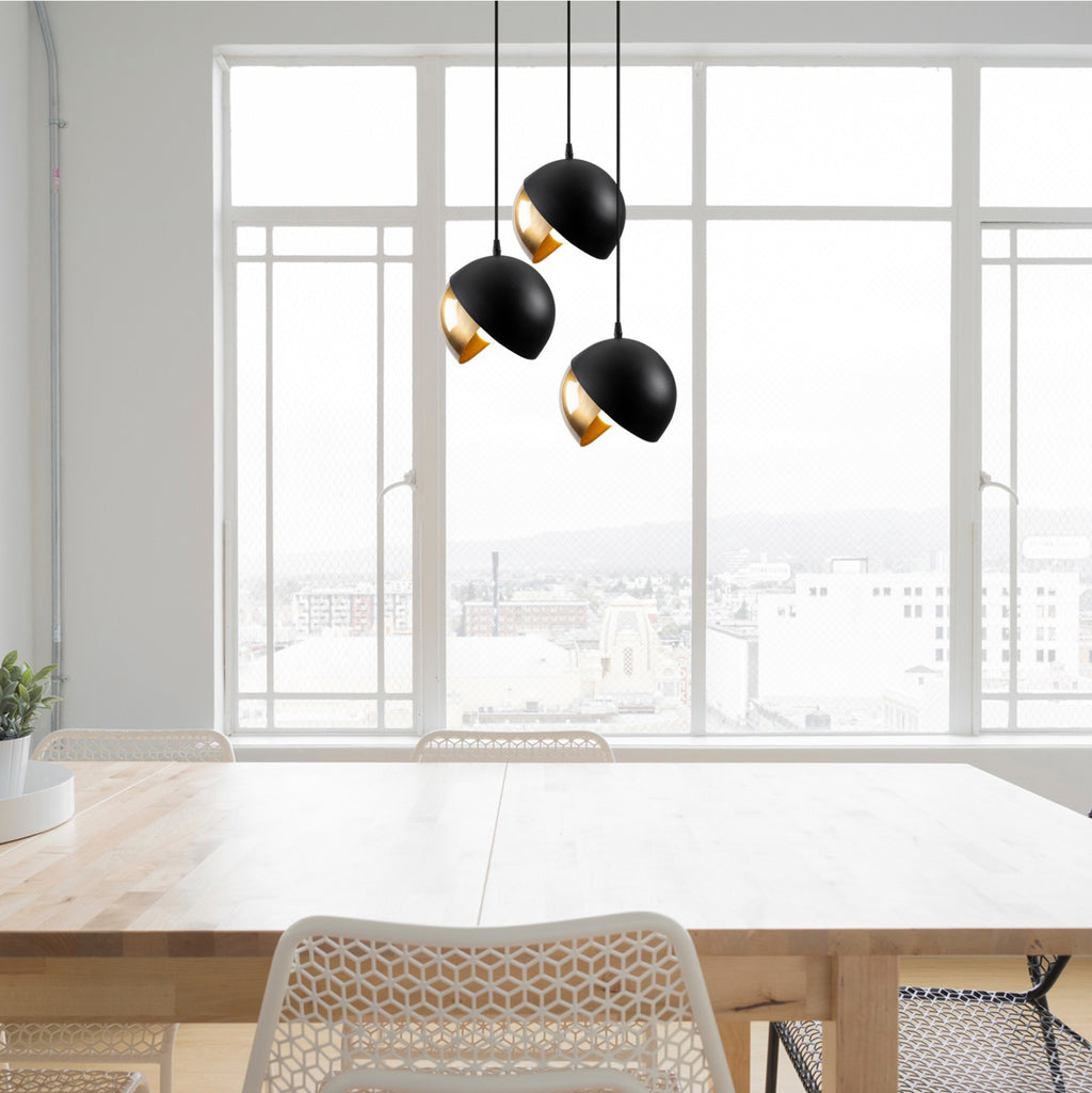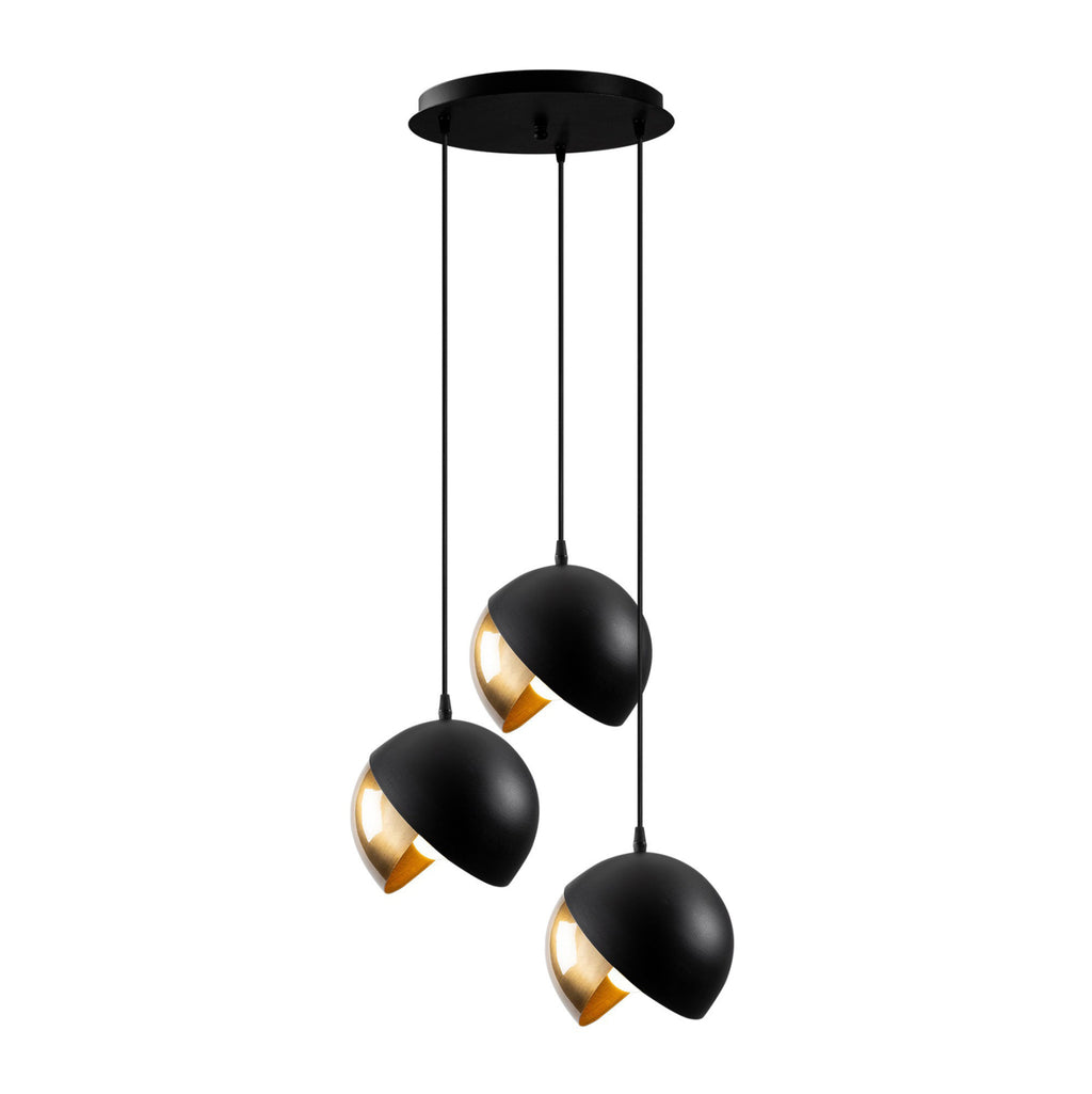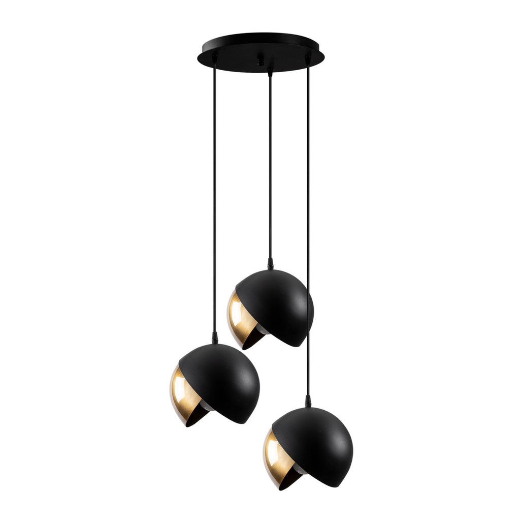 Модерна метална плафониера за завършване на декорацията на вашето лично пространство. Изработен от метал, съчетан с фини двуцветни златно и черно. Дължината на окачването е регулируема, така че можете да го регулирате на височината, която ви подхожда. Приема 3 крушки E27. Крушките не са включени. Размери: 40х40х114см. Цвят на основата: Черен Цвят на окачването: Черен Цвят на лампата: Черен, златен Тип на лампата: Многосветлинна лампа Стил: Модерна лампа Техника: Метална електростатична боя Европейско производство и произход. Продуктът се предлага във фабрична опаковка.
