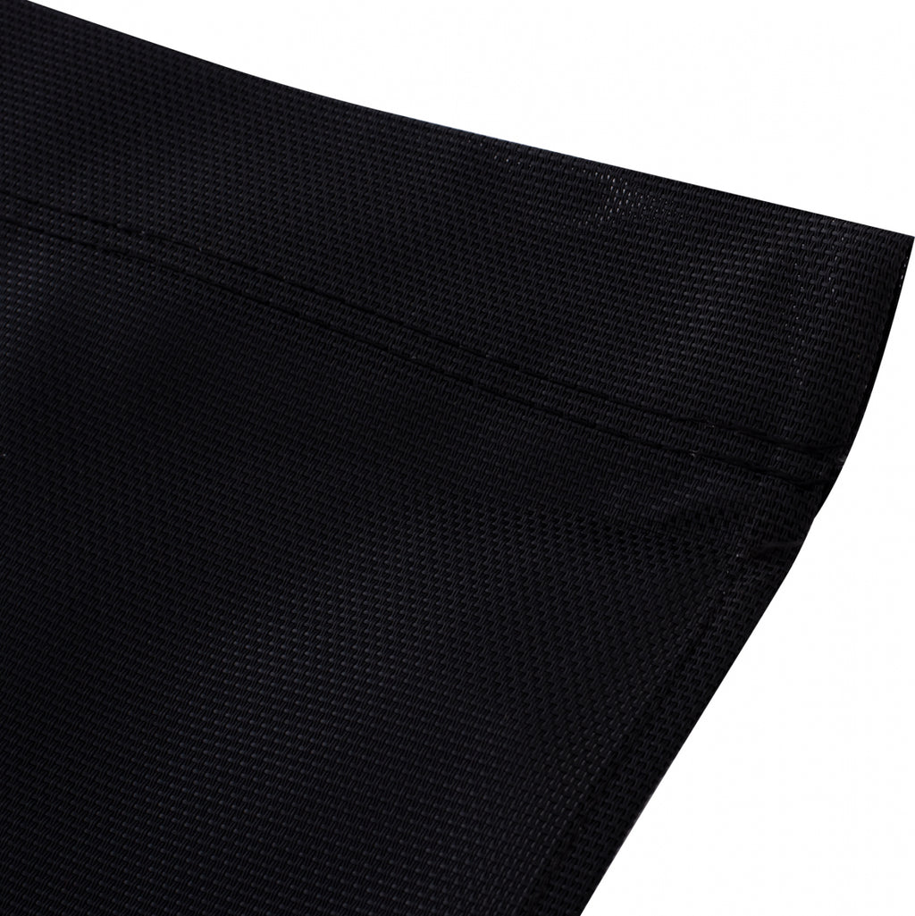 Резервна кърпа за шезлонг, в черен нюанс. Той е едно цяло, седалка и облегалка заедно и е подходящ за шезлонг Naxos. Материята е перфориран текстил с плетка 2х1 и 600гр/м2 Размери: 44х120см. *ПРЕДУПРЕЖДЕНИЕ, връщане или теглене НЕ се приема след закупуване на резервен плат или плат за чадъри, шезлонги, директорски столове или кресла, беседки и др.