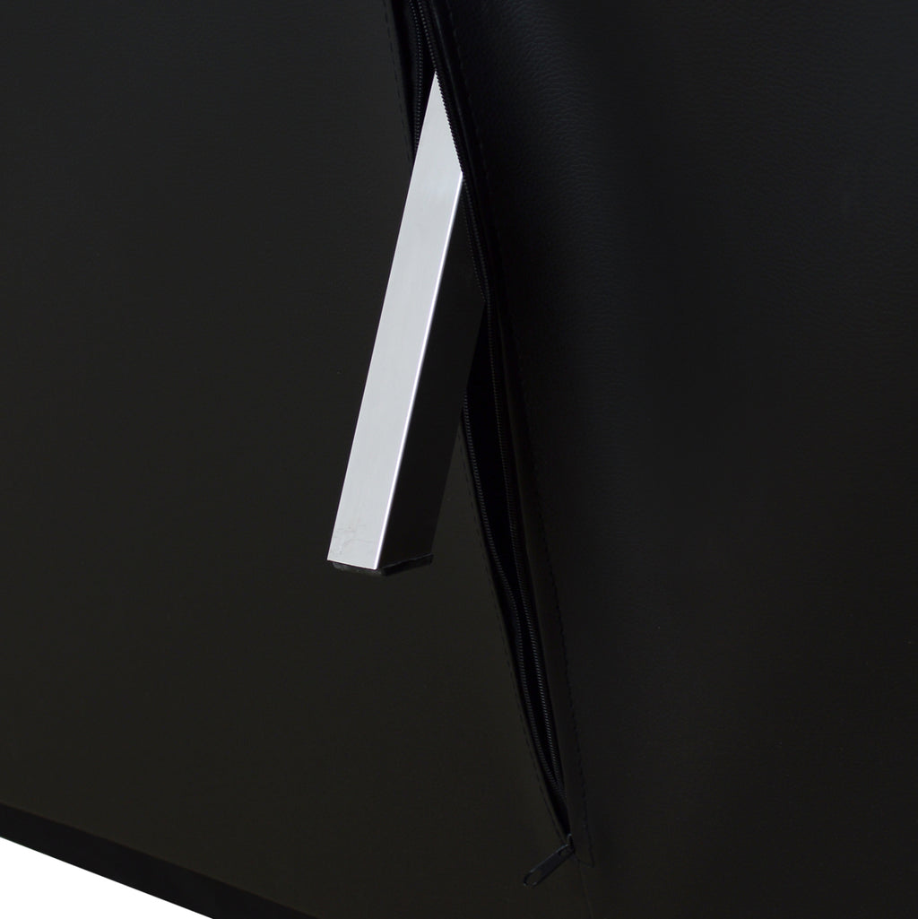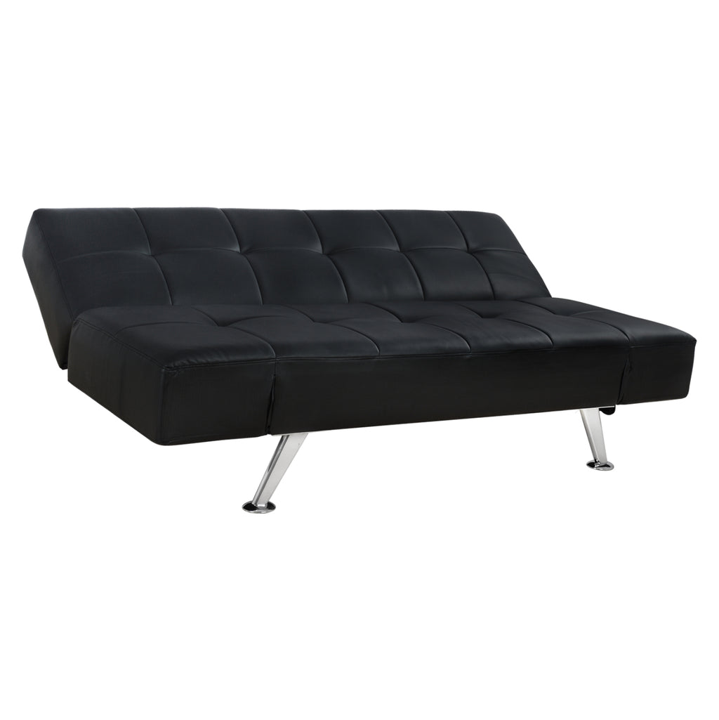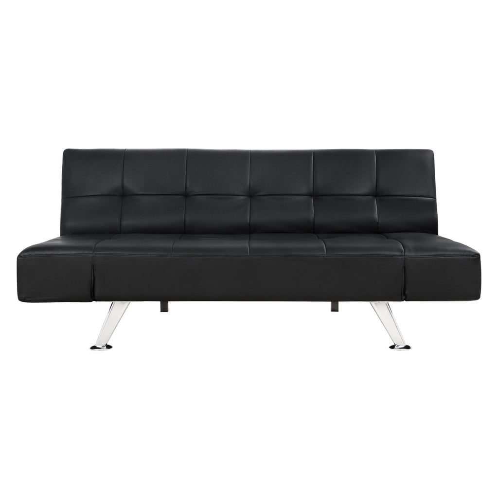 Разтегателен диван, тапициран с еко кожа в черен нюанс 189х93х82см. Ако търсите комфорт и функционалност във вашите мебели, този продукт ще ви осигури и двете. Този универсален диван е идеален за неочаквани нощуващи гости, като същевременно осигурява удобна зона за сядане. Има механизъм на гърба за превръщане в легло и регулиране на наклона в две позиции. Има и сгъваеми рамена. Изработена от изкуствена кожа в черен нюанс и иноксови крака. Той е идеален избор за тези от вас, които търсят нещо елегантно, функционално и качествено. Идеален избор за студенти, а също и за малки къщи. Размери: 140x75x89 см Височина на седалката: 43 см Размери на седалката: 140x41-61 см Разстояние на краката: 123x98 см Легло: 190x140x30 см Разстояние на краката: 178x95 см Възглавници: 61x30 см (2) Дебелина на възглавницата: 20 см Височина на крака: 18 см.