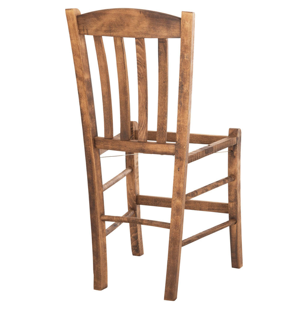 Кафе стол MONTE за професионална употреба е традиционен стол от бук в цвят ОРЕХ. Гърбът е с дизайн с вертикални ламели и е естетически подходящ за механа, кафене, но и като цяло за места, декорирани в класическия гръцки традиционен стил. Доставя се само рамката, която е вързана с тел за по-голяма здравина и издръжливост във времето. РАЗМЕРИ: 40x41x87H см. Размери на седалката: 39х32,5см. Размери на гърба: 40.5х43см. Височина на седалката: 44,5 см. Височина на крака: 41,5 см. Разстояние на краката: 34-40х34,5-41 см. Височина на крака отзад: 20.5-28 см. КОНСТРУКТИВНИ МАТЕРИАЛИ: Рамката е изработена от качествена масивна БУКОВА дървесина. Масивното дърво е вид дърво, чисто и неизбелено, традиционно използвано от дърводелците за направата на мебели. Масивната дървесина е най-скъпият избор по отношение на дървесината, но се откроява със своята вечна естетика. Ефектът, който предлага на притежателя си е наистина уникален. Букът е твърдо, здраво, еластично и тежко дърво с малки пори. Това дърво е елегантно и има червеникавокафяв цвят. Когато е сух, букът се счита за по-добър от дъба по отношение на якост на огъване, твърдост и устойчивост на удар и разкъсване. Лесно приема консерванти и залепва ефективно. Това е най-широко използваната дървесина в мебелната индустрия. Импрегнирането в най-широк смисъл е оцветяване на дърво (обикновено лакове) по метода на потапяне. В резултат на това дървото има многократно по-дълъг живот от необработеното дърво. ПОДДРЪЖКА: Необходимо е само почистване от прах и при необходимост почистване с влажна кърпа. ** Цветопредаването на продукта може леко да се различава от неговото фотографско представяне на вашия екран.