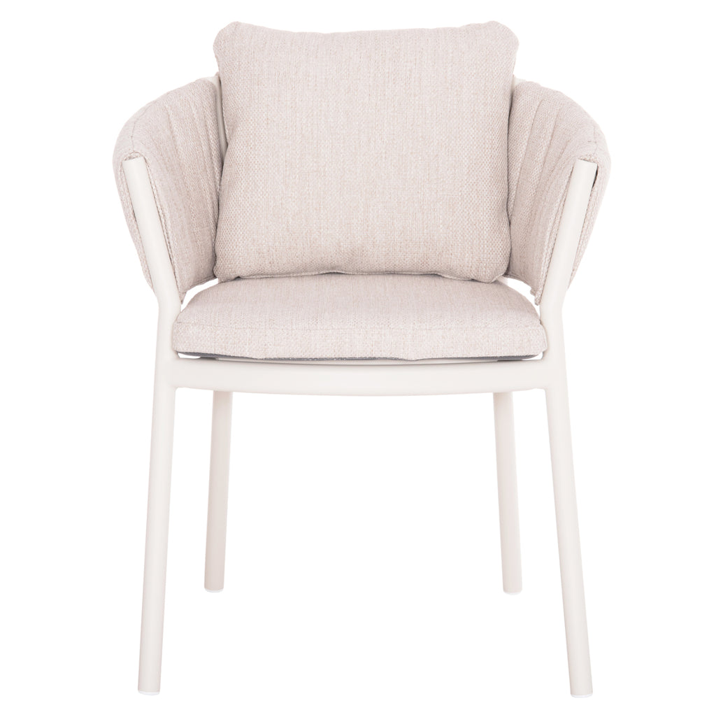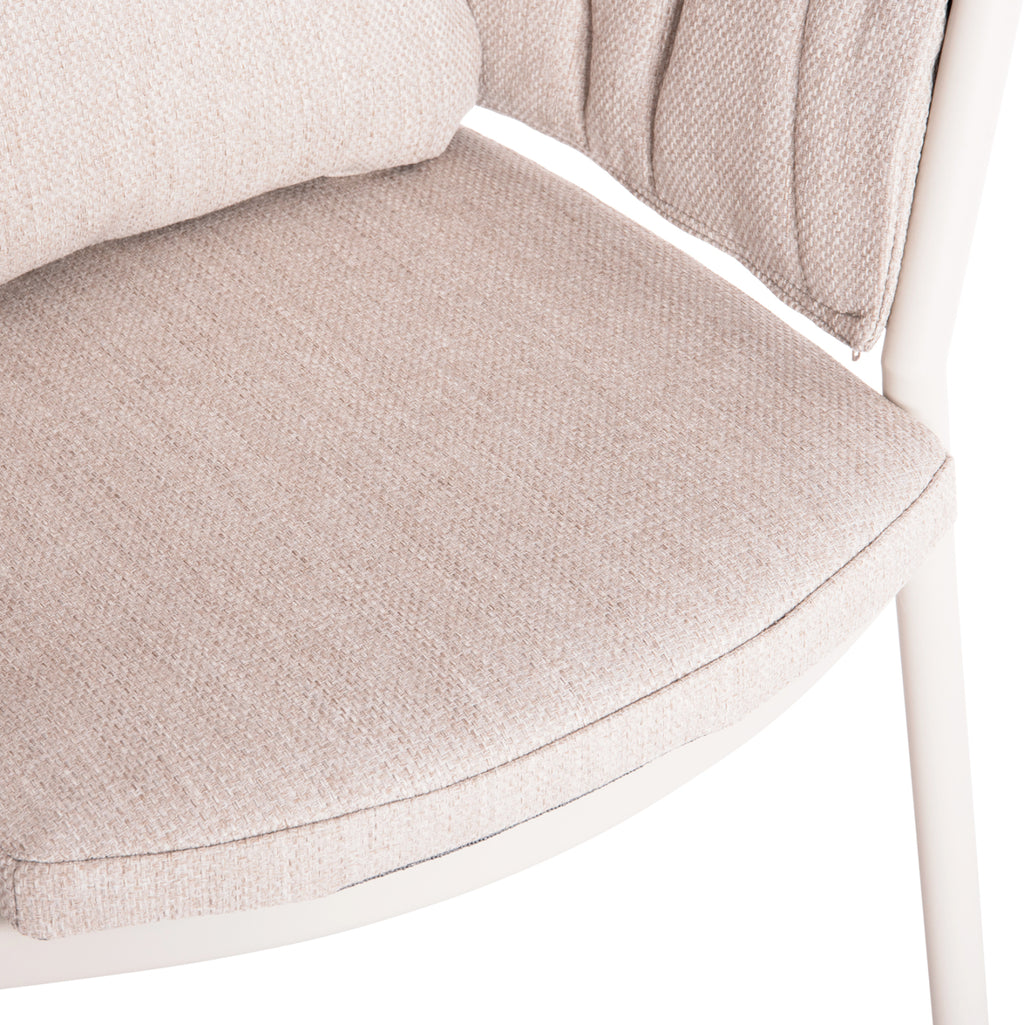 Алуминиево кресло SHANKS в КРЕМАВ цвят е с полукръгла облегалка и има възглавници за облегалка и седалка. Естетично е покрита с дамаска ОЛЕФИН, а калъфките на възглавниците са с дамаска ОЛЕФИН в БЕЖОВ цвят. Всичко, което трябва да направите, е да намерите правилната маса, която да подхожда на този прекрасен фотьойл. РАЗМЕРИ: 63x60.5x75-77H см. Размери на седалката: 44х36 см. Размери на гърба: 37х31см. Височина на ръцете: 71 см. Височина на седалката: 49,5 см. Височина на крака: 39 см. Разстояние между краката: 57-52x51.5-46см. МАТЕРИАЛИ НА КОНСТРУКЦИЯТА: Рамката е изработена от алуминий, боядисан с електростатична боя. Алуминият е „зелен“ материал, който може да се рециклира неограничено време, като запазва характеристиките си без влошаване на качеството. По своята същност алуминият е устойчив на корозия. Информация: Електростатичното боядисване е процес на сухо покритие, използван като метално покритие. Олефиновото влакно е синтетично влакно, изработено от различни пластмасови материали. Тъканта, изработена от това влакно, е здрава, устойчива на избледняване и устойчива на плесен, абразия и слънчева светлина, тъй като има UV защита, добавена в процеса на производство. Най-важните характеристики обаче са, че е водоустойчив и устойчив на петна (устойчив на петна). ПОДДРЪЖКА: Освен редовно почистване от прах, можете да го забърсвате с влажна кърпа. Не използвайте химически почистващи препарати. ** Цветопредаването на продукта може леко да се различава от неговото фотографско представяне на вашия екран.