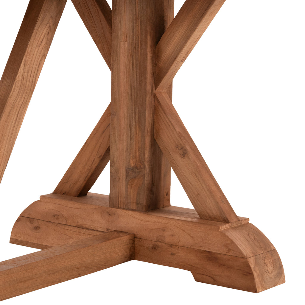 КГ9563---Голяма правоъгълна маса, изработена изцяло от масивни ТИКОВИ дървесини в естествения им цвят. Краката са особено здрави и са разположени на кръст. Маса, която ще надстрои вашето външно пространство и ще зарадва всеки с особено големия си размер и издръжливост. Заедно със съответните пейки ви позволява да създадете красив комплект, за да се насладите на времето със семейството или приятелите си. ТЕХНИЧЕСКИ ХАРАКТЕРИСТИКИ: Размери: 350х120х75Н см. Дебелина на повърхността: 5см. Дебелина на крака: 10х10 см. / 4х6 см. / 11х11 см. / 6х6 см. МАТЕРИАЛ НА ИЗРАБОТКА: Масата е изработена от масивно рециклирано ТИКОВО дърво. Масивната дървесина е вид дървесина, чиста и неизбелена, и е най-скъпият избор в дървесния тип и се откроява със своята вечна естетика. Ефектът, който предлага на притежателя си е наистина уникален. Тиковото дърво е най-популярният вид твърда дървесина. Той е жълт до тъмно кафяв на цвят, изключително тежък, с висока якост, устойчив на атмосферни влияния, устойчив на стружки и не се разлага. Често водите на дървото му са силни и прави. Използва се за много интериорни конструкции. ** Съществуващите пукнатини или такива, които могат да се образуват с времето се дължат на свиването-разширяването на живия организъм, наречен масивна дървесина, а не са производствен дефект, придавайки оригиналност и уникален дизайн на вашето пространство. Това не са дефект на продукта. ПОДДРЪЖКА: Фактът, че ТИК е част от твърдата дървесина, го прави много лесен за поддръжка. Всичко, от което се нуждае, е почистване от прах и при необходимост почистване с влажна кърпа. ПРЕДИМСТВА: Тези, които са почитатели на рустик стила в обзавеждането и декорацията ще останат възхитени от тази маса. Той е огромен, здрав и идеален за дома, но също и за хотели, Airbnb, заведения за обществено хранене и т.н. И винаги на най-ниската цена на пазара.