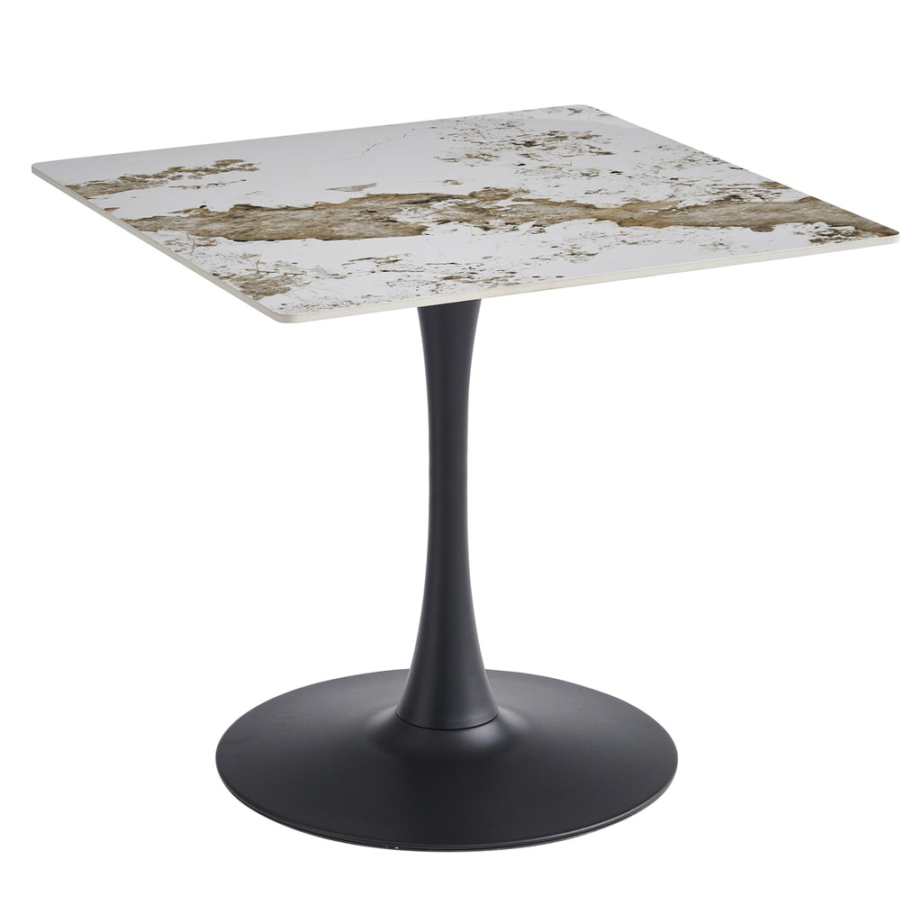 TETRAN е красива маса, която ще украси вашата трапезария. Тя има квадратна повърхност, изработена от синтерован камък в лъскава цветова схема PANDORA, като същевременно е поддържана от кръгла основа и метална колона в цвят MATT BLACK. Идеална както за дома, така и за професионални пространства. РАЗМЕРИ: 80x80x74Y см. Дебелина на повърхността: 12 мм СТРОИТЕЛНИ МАТЕРИАЛИ: -Метал с електростатично боядисване, което придава перфектен завършек и издръжливост. - Повърхността е изработена от синтерован камък (синтерован камък). Разбира се, той няма нищо общо с камъка, тъй като това е неговият научен термин. Синтерованият камък е матрица (калъп) от минерали, като гранит, кварц, парчета стъкло и др., които се нагряват (слепват), за да образуват твърда, непропусклива маса, която води до повърхност, която не може да бъде ецвана, надраскана, изгорена или оцветена. Всъщност, дори по свойствата си, този материал е много подобен на керамиката, но е дори по-добър! ПОДДРЪЖКА: Избърсвайте с мека и леко влажна кърпа. Избягвайте използването на химически почистващи препарати. *Масата се доставя несглобена във фабрична опаковка. ** Цветопредаването на продукта може леко да се различава от фотографското му представяне на вашия екран.