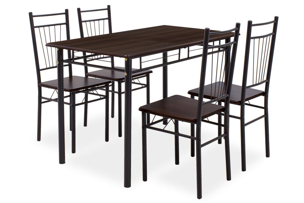 Трапезен комплект Roza 5бр цвят тъмен орех - крака черен мат 120x70x75см