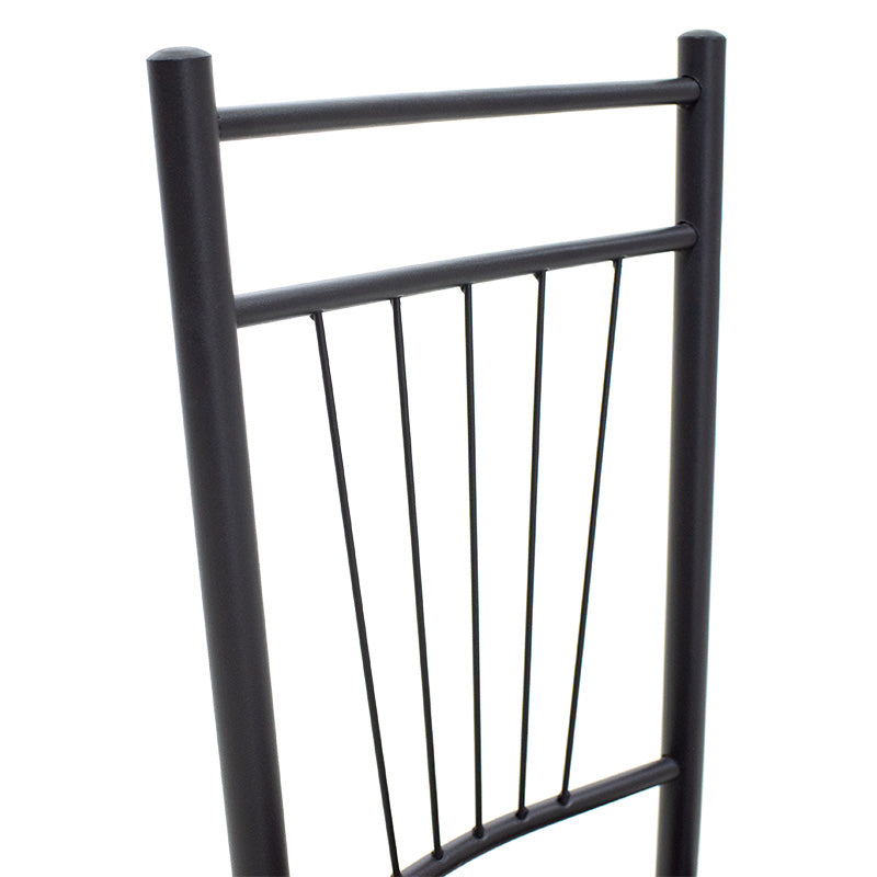- Поддържан от подсилена метална рамка, завършваща с четири кръгли метални крака, електростатично боядисани в черен матов цвят. Имат висока устойчивост на удари и отлична стабилност.