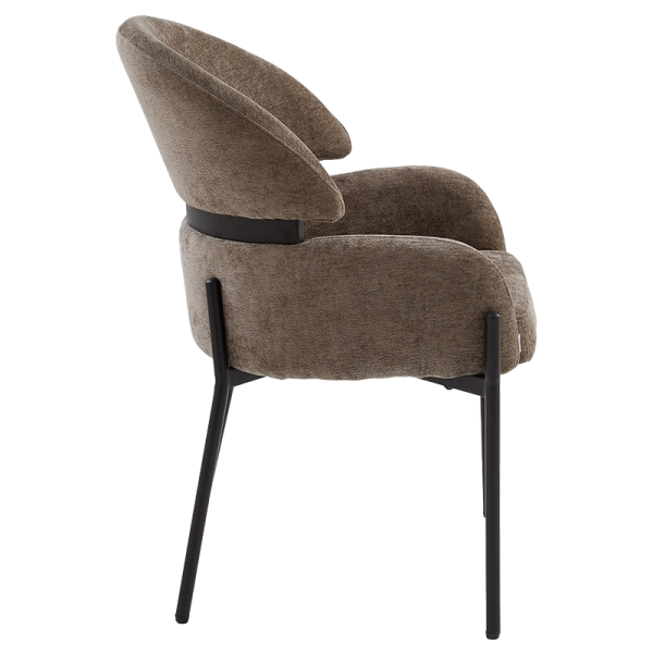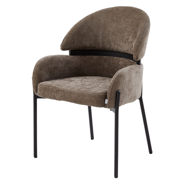 Трапезен стол ASTI привлича от пръв поглед с обгръщащ силует и „плаваща“ облегалка – дизайн, който кани да седнеш. Меката на допир дамаска и щедро подплатената седалка осигуряват комфорт за дълги вечери, а изчистените метални крака с прахово покритие добавят графична лекота и стабилност. Компактен като размер, силен като присъствие – естествен акцент към маси от дърво, камък или метал.