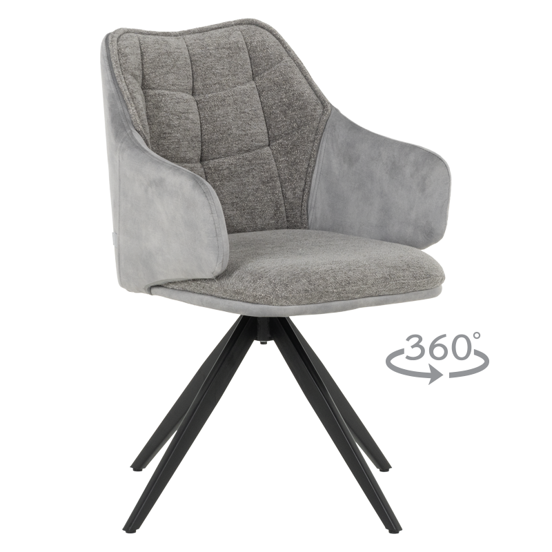 Трапезен стол BORDON притежава елегантна визия и стабилна основа от праховобоядисан метал. За облегалката и седалката е използвана приятна на допир дамаска с високо качество. Моделът има удобни подлакътници, които осигуряват необходимата почивка на ръцете, както и функция за 360° въртене на седалката. Пълна информация за размерите и характеристиките на модела ще намерите в таблицата в таб/поле "Техническа информация".