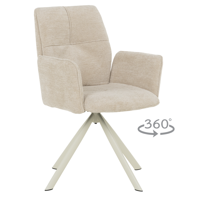 BURY 1 е удобен трапезен стол с модерна визия. Моделът разполага с високи подлакътници и удобни седалка и облегалка, изработени от първокласна дамаска. Нестандартната основа е от праховобоядисан метал. За пълна свобода на движение BURY 1 има функция за 360° въртене на седалката. Пълна информация за размерите и характеристиките на модела ще намерите в таблицата в таб/поле "Техническа информация".