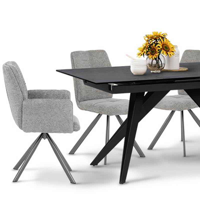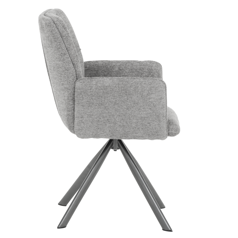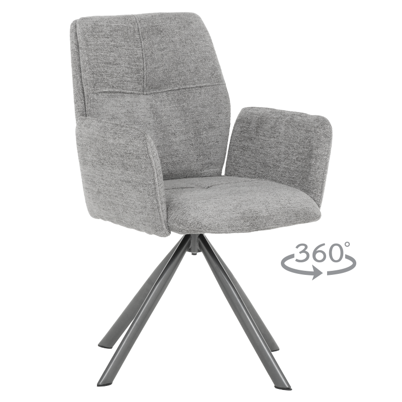 Трапезен стол BURY 2 има съвременна визия и е подходящо решение както за интериора на дома, така и за обзавеждане на различен тип заведения. Моделът разполага с високи подлакътници и широки седалка и облегалка, изработени от първокласна дамаска. Стабилността му е гарантирана от метална праховобоядисана основа. BURY 2 притежава не само страхотна визия, но и иновативна функция за въртене на 360°. Пълна информация за размерите и характеристиките на модела ще намерите в таблицата в таб/поле "Техническа информация".