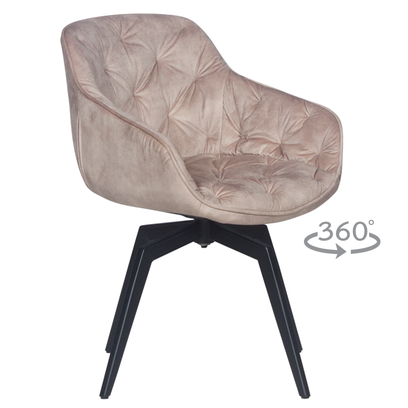 Трапезният стол BUXTON е удобен модел с елегантен и стилен дизайн, който ще се впише с лекота в интериора на изисканите ресторанти и ще създаде усещане за лукс във всеки дом. За изработката му е използвана дамаска и праховобоядисан метал за краката. За още по-голям комфорт, моделът предлага и функция за завъртане на 360°. Пълна информация за размерите и характеристиките на модела ще намерите в таблицата в таб/поле "Техническа информация".