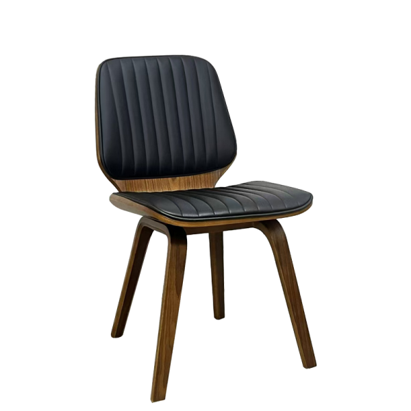 Дървените крака в цвят орех гарантират стабилност и устойчивост, а черната еко кожа създава модерен контраст. Този стол е подходящ избор както за модерни трапезарии, така и за интериори с винтидж характер.